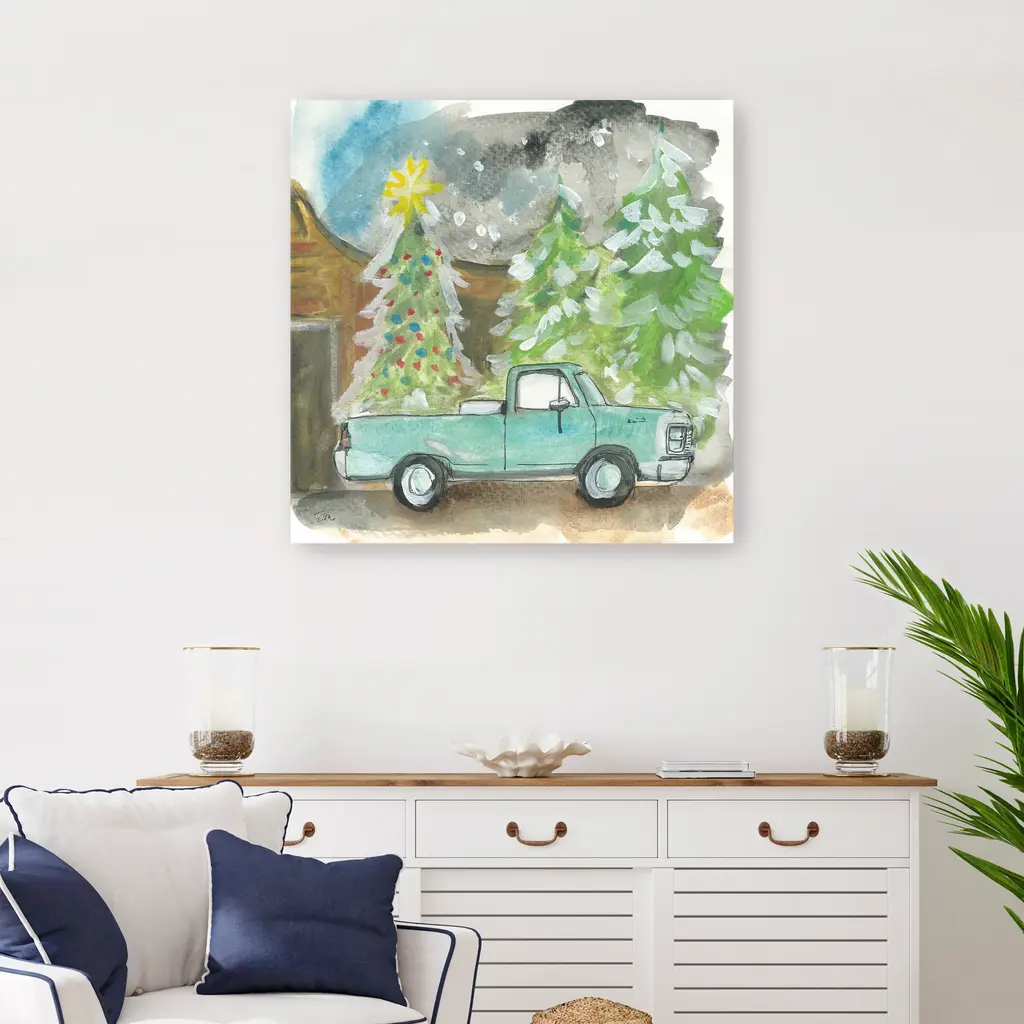 Christmas Tree Truck Canvas Giclee - Framed / Black / 40x40