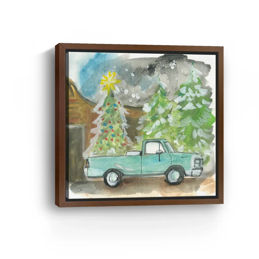 Christmas Tree Truck Canvas Giclee - Framed / Dark Walnut / 30x30