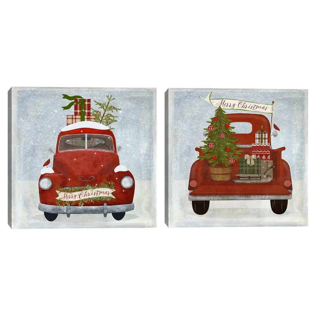 Christmas Truck I By Beth Albert Canvas Art Prints - 16x16x2