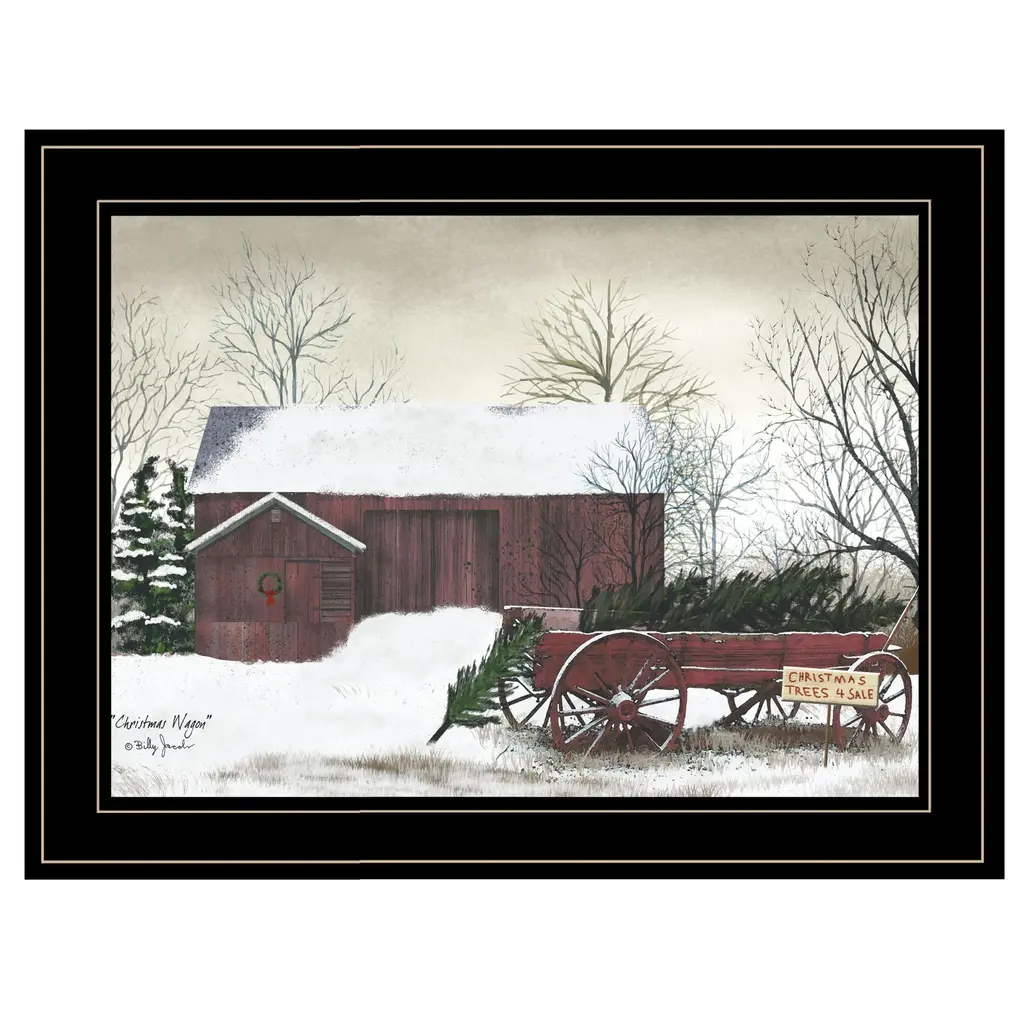 Add some Christmas cheer to your space with this christmas wagon 2 black framed print wall art. This print is a visual artistic expression that allows you to decorate your space in style. Reproduced for you on paper, this hanging decorative accent will be a trendy and fashionable way to dress your walls. Adding this hanging wall art to your space to make your room feel more finished and attractive. Instantly liven up your space with this art that brings color and dimension to your walls. 15" H x 21" W x 1" D