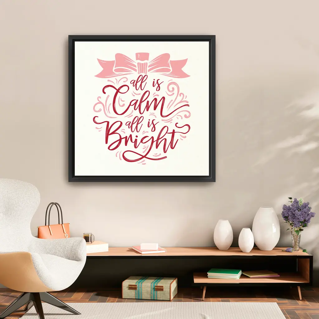 This canvas wall art captures the essence of the season with its graceful message and ornament-inspired composition. Perfect for cozy interiors, it brings a sense of calm and festive elegance to your space. Our Gallery Wrap Canvas Prints are proudly assembled with high quality materials in California, USA. Each piece is printed on a thick, archival grade canvas using Giclee technology. It is then hand-stretched by our experienced artisans over solid wood bars, which will not warp over time. The final product is a piece personally crafted for you to confidently display on your wall. Care and Assembly: Ensure that the location of your piece has little to no exposure to heat, sunlight, and moisture. Wipe clean, only if needed. Each piece includes hanging hardware to hang on your wall horizontally.