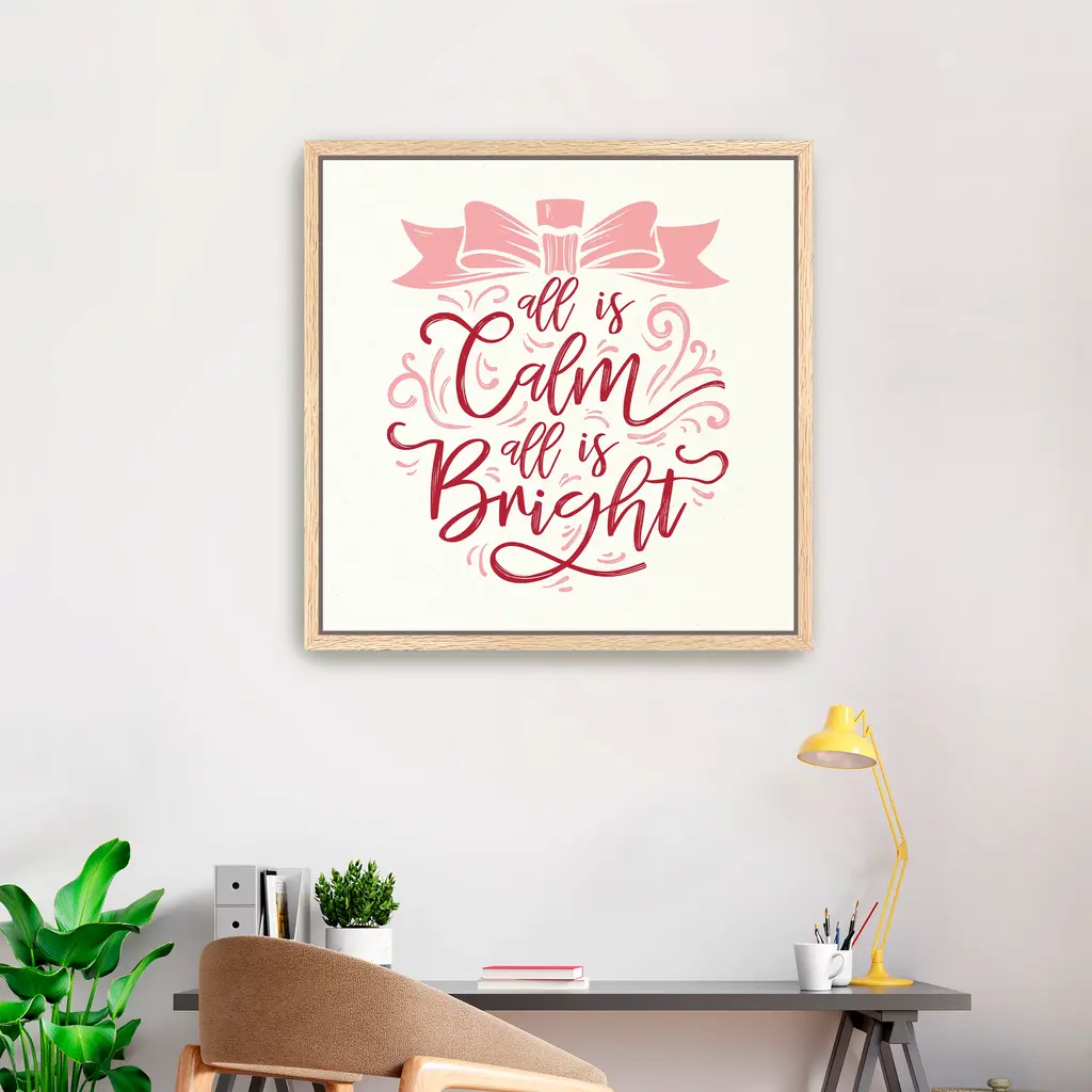 This canvas wall art captures the essence of the season with its graceful message and ornament-inspired composition. Perfect for cozy interiors, it brings a sense of calm and festive elegance to your space. Our Gallery Wrap Canvas Prints are proudly assembled with high quality materials in California, USA. Each piece is printed on a thick, archival grade canvas using Giclee technology. It is then hand-stretched by our experienced artisans over solid wood bars, which will not warp over time. The final product is a piece personally crafted for you to confidently display on your wall. Care and Assembly: Ensure that the location of your piece has little to no exposure to heat, sunlight, and moisture. Wipe clean, only if needed. Each piece includes hanging hardware to hang on your wall horizontally.