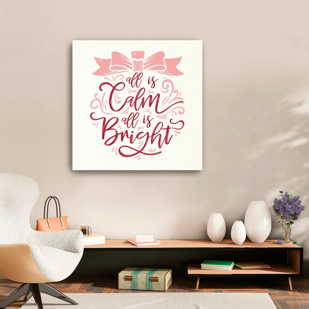 This canvas wall art captures the essence of the season with its graceful message and ornament-inspired composition. Perfect for cozy interiors, it brings a sense of calm and festive elegance to your space. Our Gallery Wrap Canvas Prints are proudly assembled with high quality materials in California, USA. Each piece is printed on a thick, archival grade canvas using Giclee technology. It is then hand-stretched by our experienced artisans over solid wood bars, which will not warp over time. The final product is a piece personally crafted for you to confidently display on your wall. Care and Assembly: Ensure that the location of your piece has little to no exposure to heat, sunlight, and moisture. Wipe clean, only if needed. Each piece includes hanging hardware to hang on your wall horizontally.
