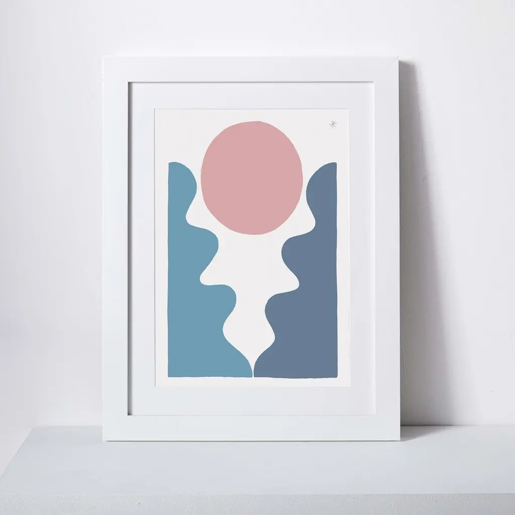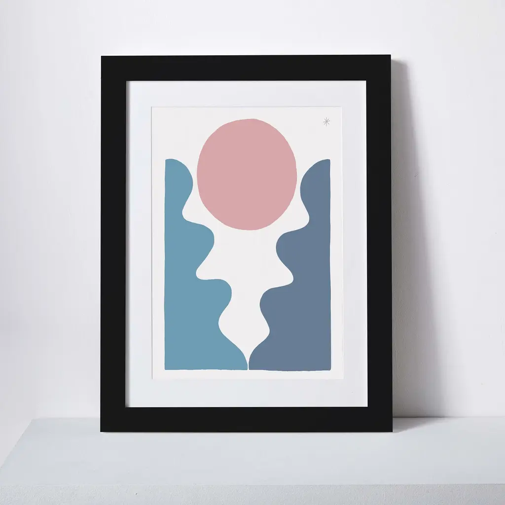 Muted tones with a mod-inspired design. Organic forms add a playful feel. Professionally printed with high-quality materials. Easy to hang in your choice of size.