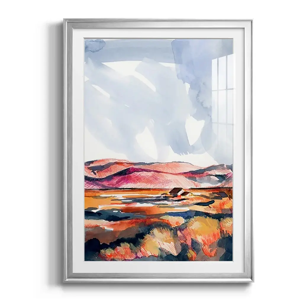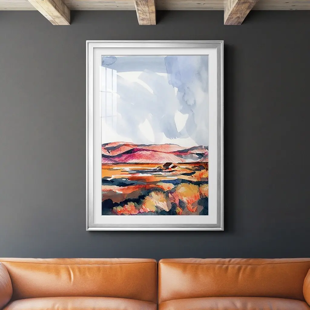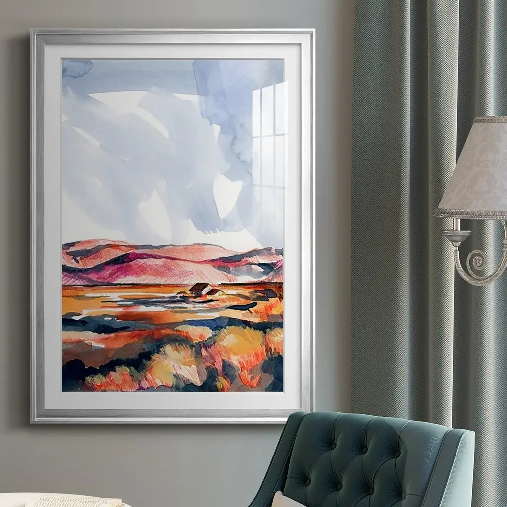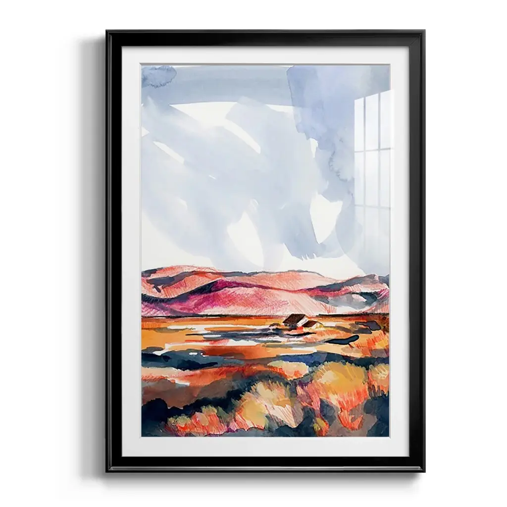 Chromatic Landscapes I Premium Framed Print - Ready to Hang A Premium Framed Print created to last. Framed in distressed wood and available in an array of sizes and colors Featuring a beveled a solid wood stretcher bar, each piece comes ready to hand 4 SIZES AVAILABLE 30.5''X42.5'' - Overall Size 26.5'X36.5'' - Overall Size 22.5''x30.5'' - Overall Size 18.5''x24.5'' - Overall Size Each piece is made to order. Each piece comes with hanging hardware. Made in the USA Ready to Hang Giclee Paper Print Acrylic Glass Beveled Matt Board