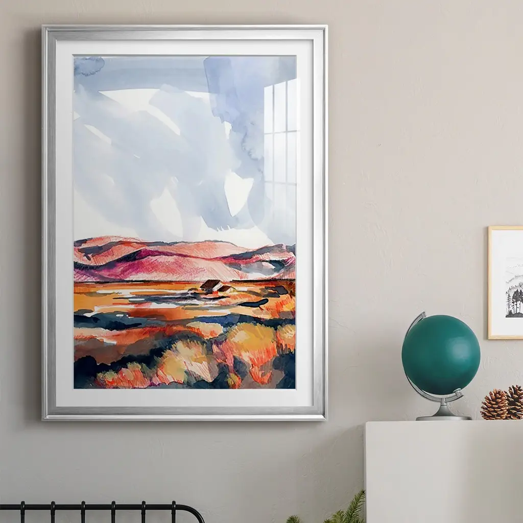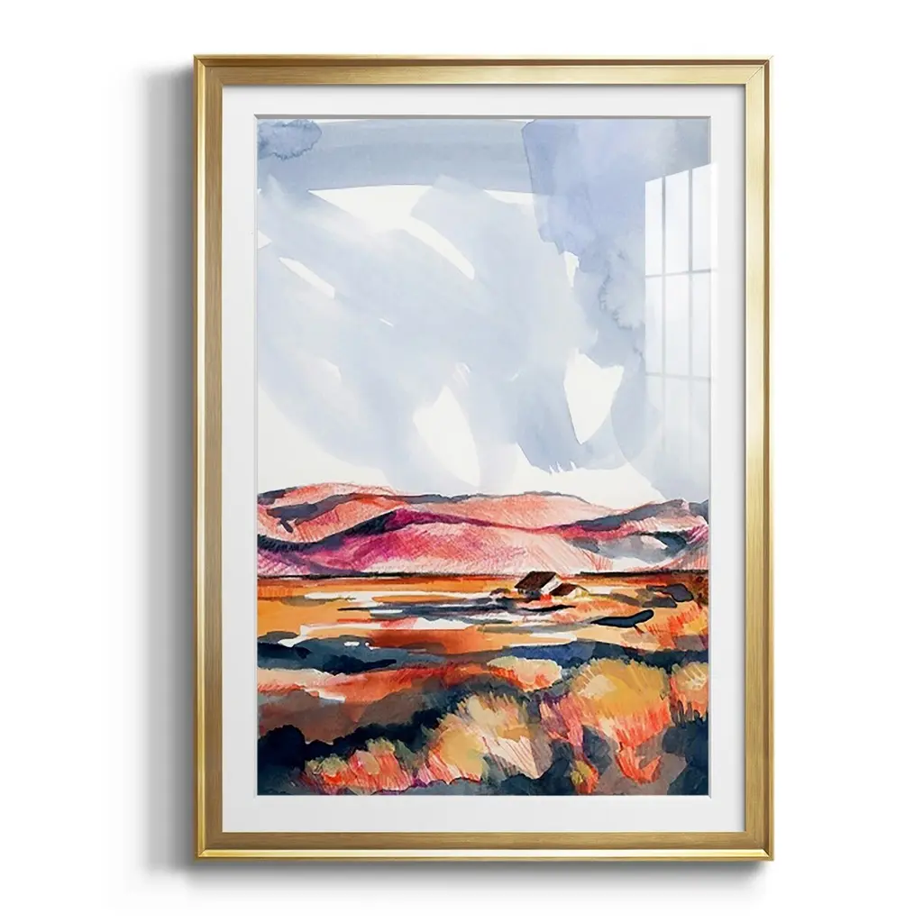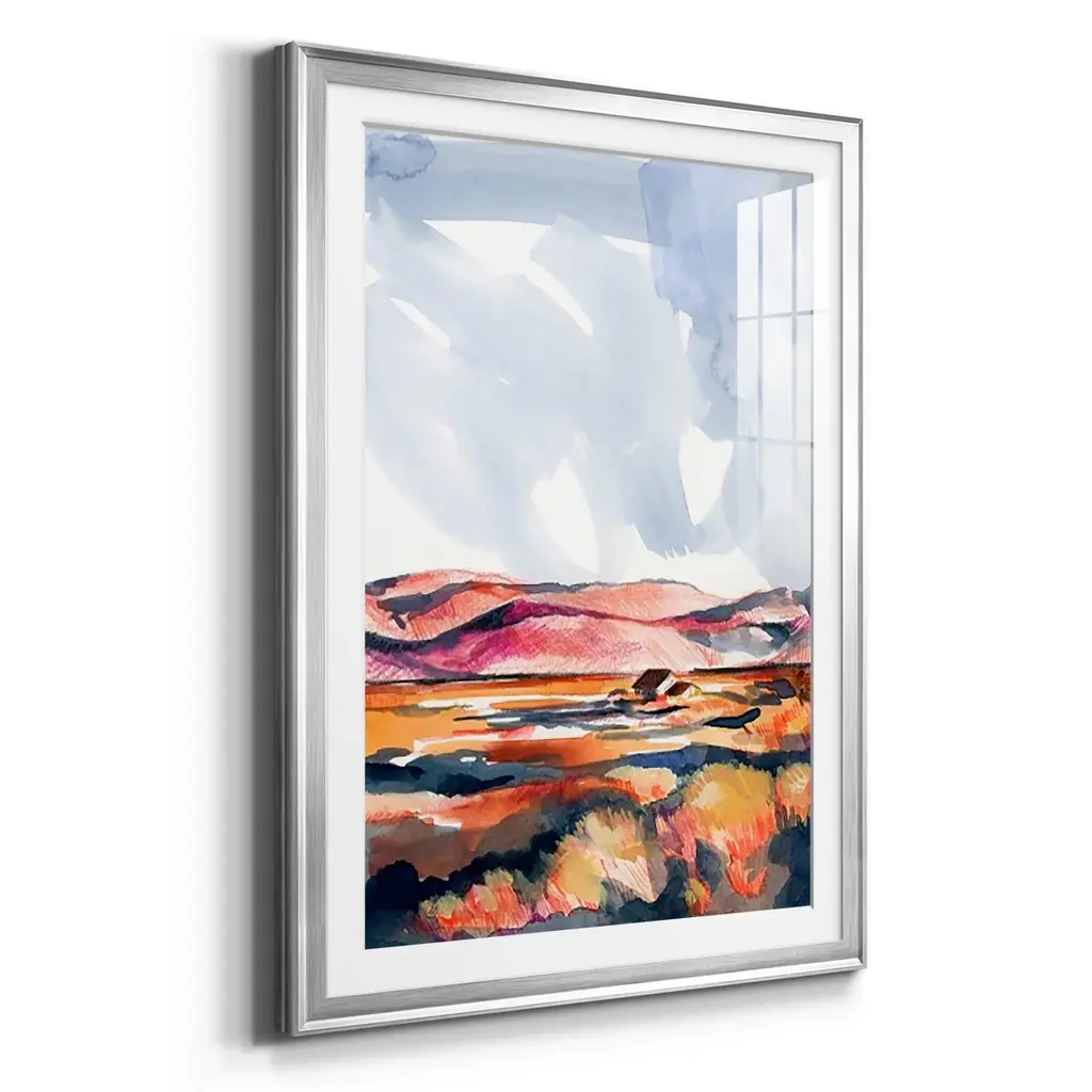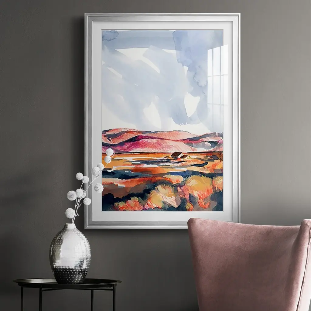 Chromatic Landscapes I Premium Framed Print - Ready to Hang A Premium Framed Print created to last. Framed in distressed wood and available in an array of sizes and colors Featuring a beveled a solid wood stretcher bar, each piece comes ready to hand 4 SIZES AVAILABLE 30.5''X42.5'' - Overall Size 26.5'X36.5'' - Overall Size 22.5''x30.5'' - Overall Size 18.5''x24.5'' - Overall Size Each piece is made to order. Each piece comes with hanging hardware. Made in the USA Ready to Hang Giclee Paper Print Acrylic Glass Beveled Matt Board