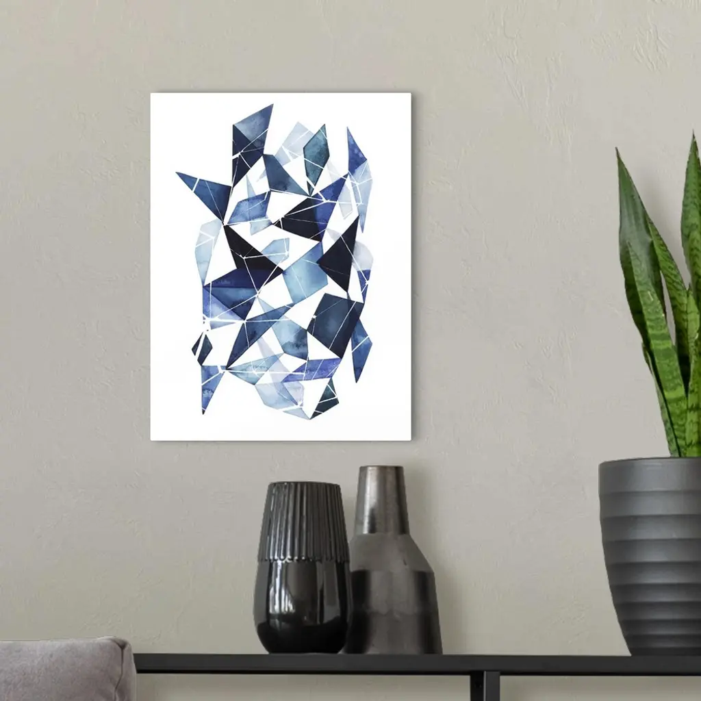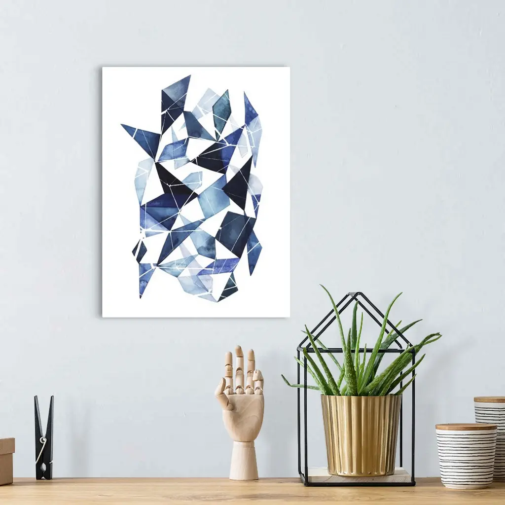 Abstract watercolor geometric artwork in shades of blue.