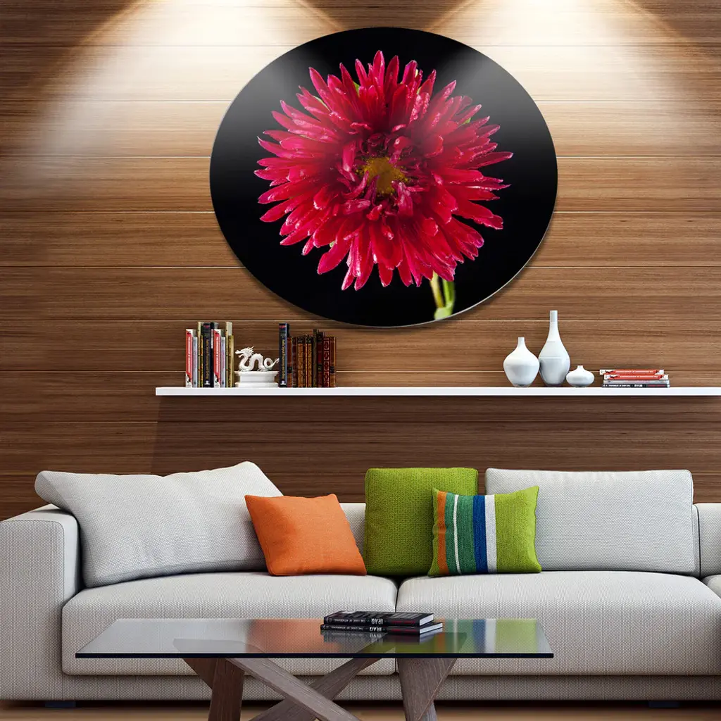 Bring Contemporary Abstraction to your home with this large Circle Metal wall art. This Chrysanthemum Flower on Black Metal Artwork makes it the focal point of any room or office. - White Gloss Coating ensures colors are extra vibrant with light reflection.- Aluminum grade Sheet Metal with 1 inch mounting frame on the back giving the illusion that the artwork is floating on the wall..- Mounting Brackets are included along with instructions.- High Quality Digital images are created directly into a glossy aluminum panel producing a stunning and captivating print into the glossy finish of the metal.- Water, Fire and Scratch resistant HD Aluminum panels.- Looks better than any photo paper and guaranteed to last at least 20 years- Easy to clean with a microfiber cloth. Colors are far superior to regular Canvas Art. - Easy to Hang