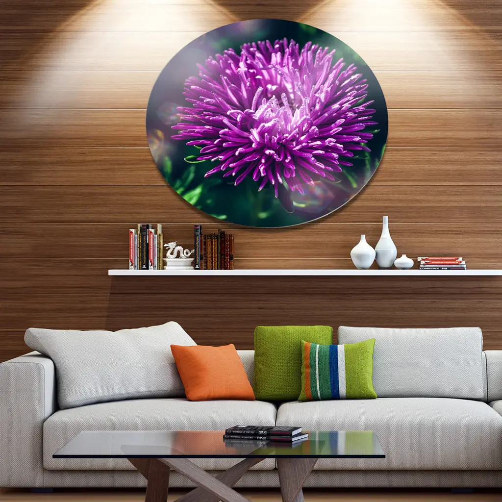 Bring Contemporary Abstraction to your home with this large Circle Metal wall art. This Chrysanthemum Flower with Bokeh Metal Artwork makes it the focal point of any room or office. - White Gloss Coating ensures colors are extra vibrant with light reflection.- Aluminum grade Sheet Metal with 1 inch mounting frame on the back giving the illusion that the artwork is floating on the wall..- Mounting Brackets are included along with instructions.- High Quality Digital images are created directly into a glossy aluminum panel producing a stunning and captivating print into the glossy finish of the metal.- Water, Fire and Scratch resistant HD Aluminum panels.- Looks better than any photo paper and guaranteed to last at least 20 years- Easy to clean with a microfiber cloth. Colors are far superior to regular Canvas Art. - Easy to Hang