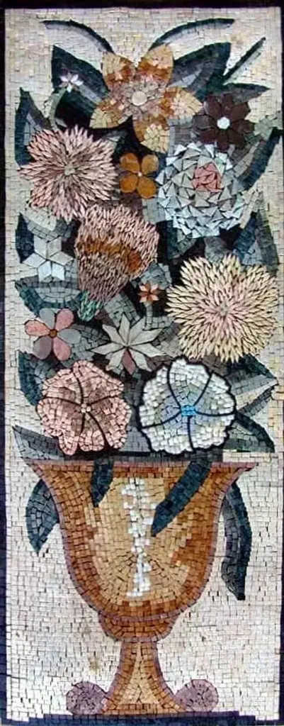 Introducing our exquisite Chrysanthemum Mosaic Wall Art, a stunning centerpiece that brings the beauty of nature into your home. Crafted with meticulous care, this handmade marble mosaic showcases an elegant arrangement of chrysanthemums, capturing the delicate intricacies of each flower in a captivating design. Each piece is composed of all-natural stones and hand-cut tiles, ensuring that no two mosaics are exactly alike. The vibrant colors and unique textures of the stones create a harmonious balance that can transform any room into a haven of beauty and tranquility.Perfect for floral decor enthusiasts, this mosaic wall art serves as an eye-catching statement piece that can elevate the aesthetic of your living space. Whether you choose to hang it in your living room, bedroom, hallway, or office, the Chrysanthemum Mosaic Wall Art will draw attention and admiration from all who see it. The timeless design and artisanal craftsmanship make it a wonderful addition to any decor style, from modern to traditional.Beyond its visual appeal, this mosaic wall art embodies the artistry of skilled artisans who dedicate their expertise to creating pieces that celebrate nature's beauty. Each tile is carefully selected and positioned, ensuring a high-quality finish that reflects the passion and creativity behind the work. This masterpiece not only enhances your surroundings but also tells a story of craftsmanship and dedication.Invest in the Chrysanthemum Mosaic Wall Art to bring a touch of elegance and artistry to your home. It also makes a thoughtful gift for loved ones who appreciate unique decor and the beauty of nature. Add this one-of-a-kind piece to your collection today and experience the transformative power of art in your space.