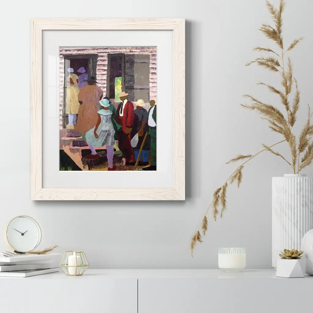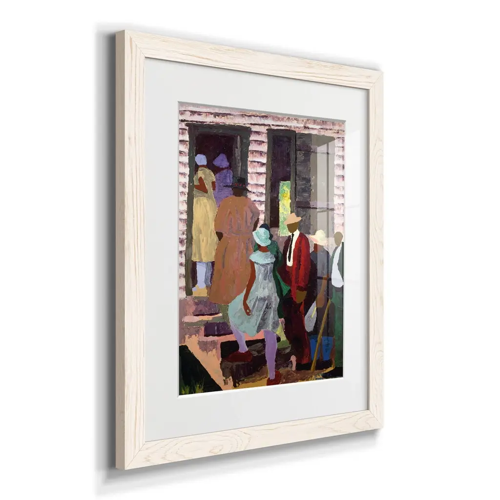 Church Picnic-Premium Framed Print - Ready to Hang Framed in distressed wood and available in an array of sizes and colors Each piece is joined and assembled by hand and comes ready to hang 2 INCH BEVELED MATTE BOARD PLEXIGLASS COVERING READY TO HANG MADE IN THE USA SOLID WOOD FRAME MADE IN USA FADE RESISTANT GICLEE PRINTING on Canvas or Paper