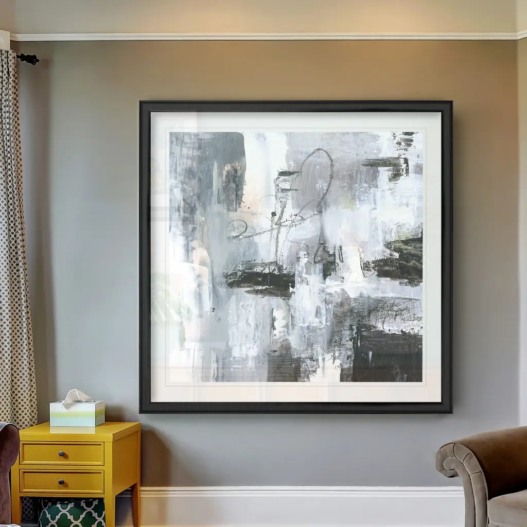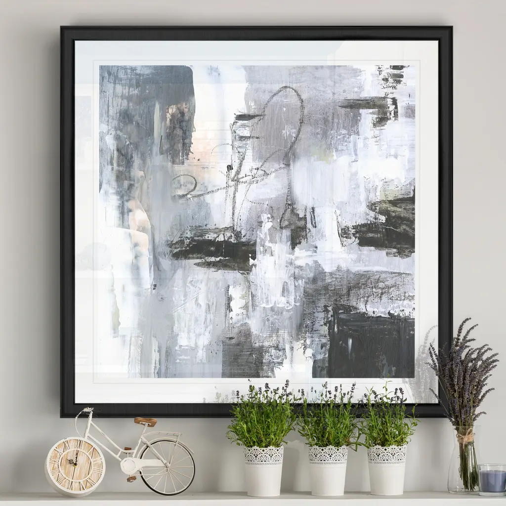 Cinder Composition I -Black Framed Print A premium Black Framed giclee print Featuring a beveled a matt , acrylic glass, and a high quality giclee print 5 SIZES AVAILABLE 34''x34''- Overall Size 30''x30'' - Overall Size 26''x26''' - Overall Size 22''x22''' - Overall Size 18''x18''' - Overall Size Each piece is made to order. Built to Last Each piece comes ready to hang Fade and Water resistant Made domestically