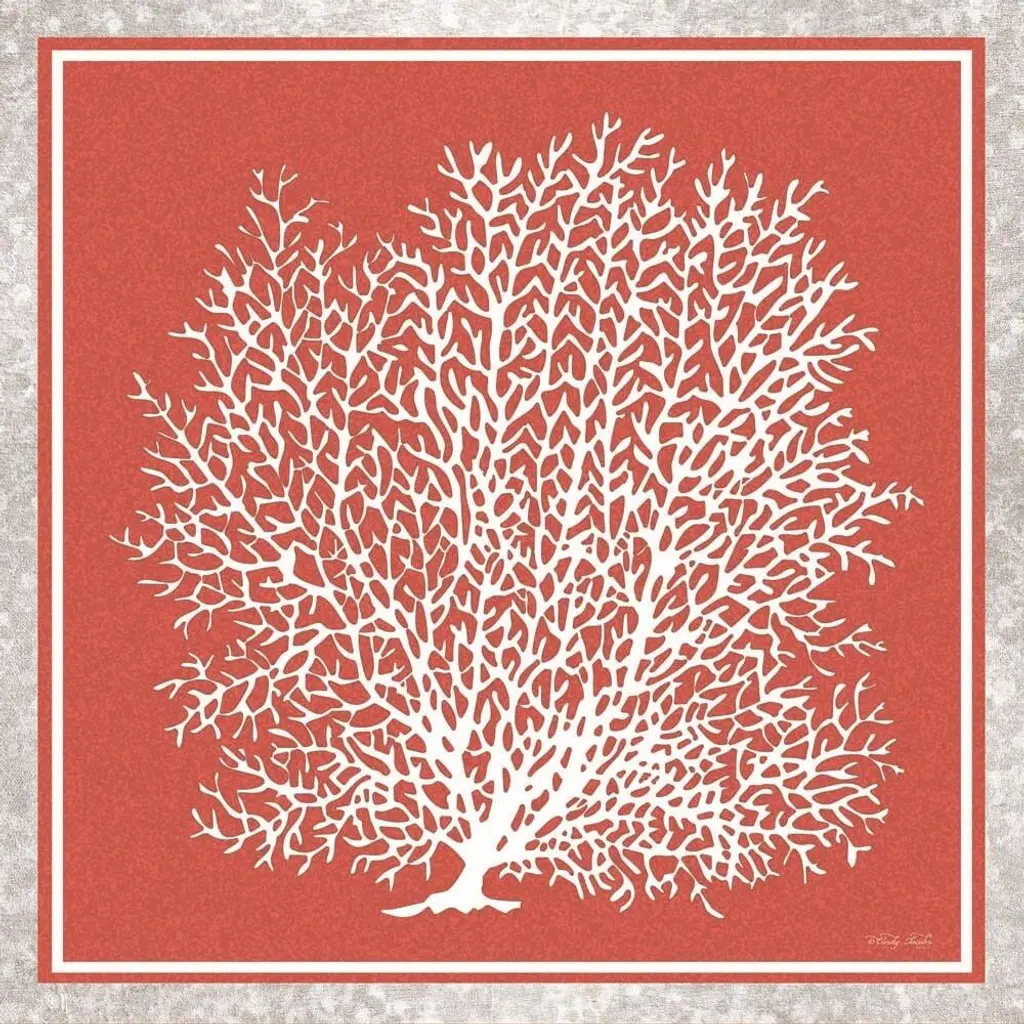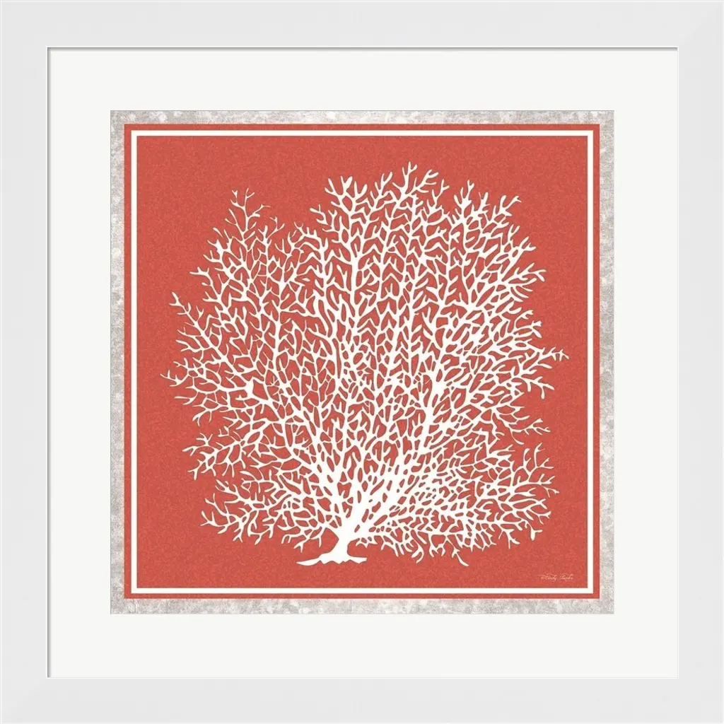 Coastal Coral on Red II by Cindy Jacobs is a high quality piece of framed artwork. The finished size of this piece is 19.75" X 19.75". It has a Slim White Flat with Satin Finish frame, is single matted and finished with high quality Glass. 100% Satisfaction Guaranteed.