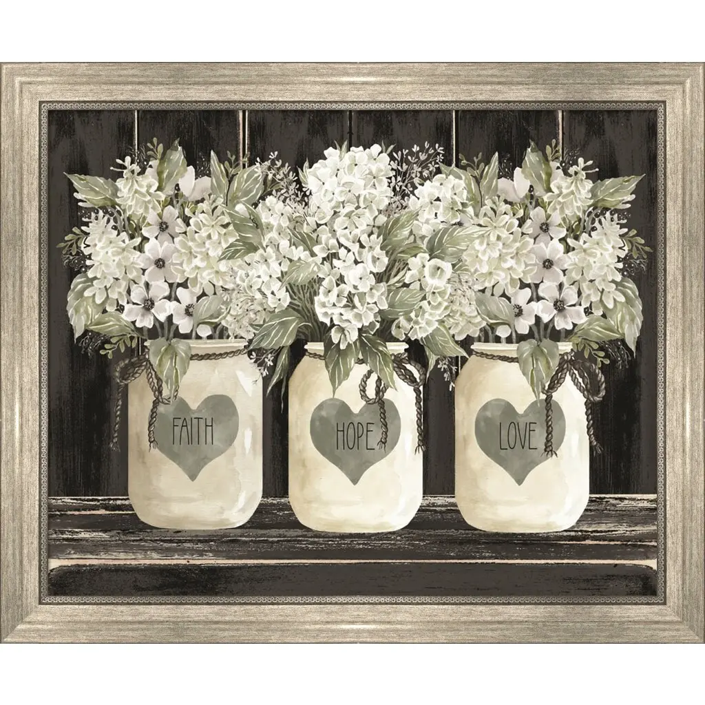 Cindy Jacobs 'Faith, Hope, Love Crocks' Framed Art - 26 X 21