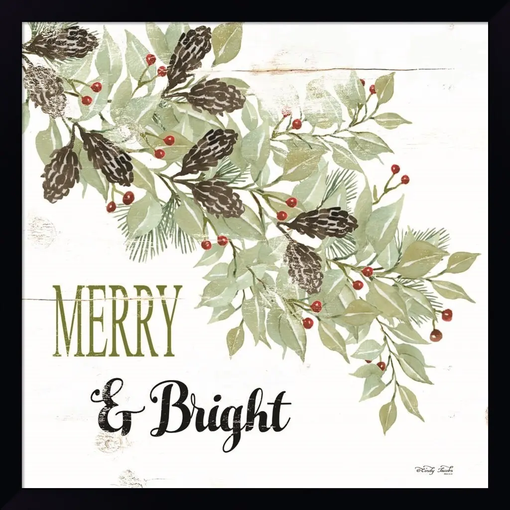 Merry & Bright by Cindy Jacobs is a high quality piece of framed artwork. The finished size of this piece is 17.5" X 17.5". It has a Petite Black with Flat Front frame and is finished with high quality Acrylic Plexiglass. 100% Satisfaction Guaranteed.
