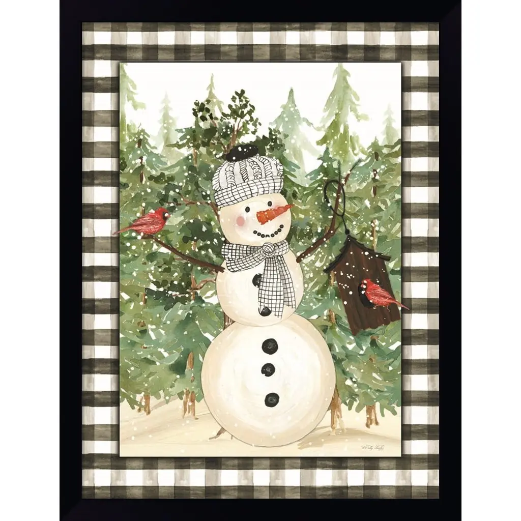 Snowman and Birdhouse by Cindy Jacobs is a high quality piece of framed artwork. The finished size of this piece is 13.5" X 17.5". It has a Petite Black with Flat Front frame and is finished with high quality Acrylic Plexiglass. 100% Satisfaction Guaranteed.