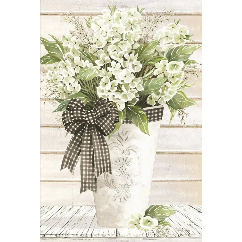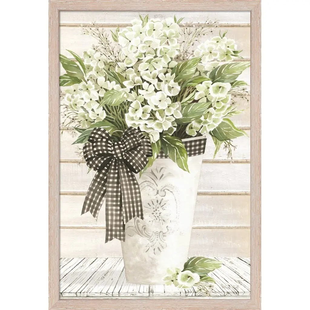 White Hydrangeas by Cindy Jacobs is a high quality piece of framed artwork. The finished size of this piece is 14.5" X 21". It has a Distressed Aged White Wash frame and is finished with high quality Acrylic Plexiglass. 100% Satisfaction Guaranteed.