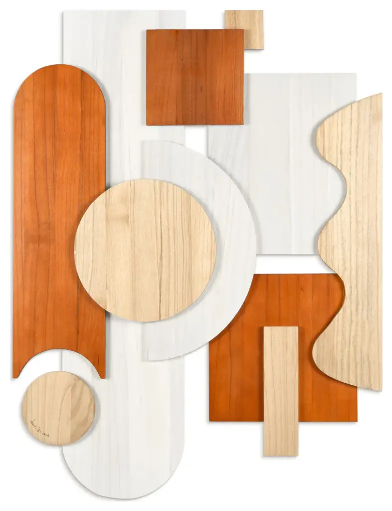 This gorgeous abstract wall sculpture is a true and artistic masterpiece, created by combining various shapes and sizes of solid paulownia wood. They are arranged creating a dynamic unity of all the shapes and sizes, that draws the eye and captures the imagination. Its colors takes you on a trip to the moon with a soft and elegant alabaster, cinnamon and natural wood accentuating the natural grain and texture of the paulownia, and enhancing its beauty. Laser engraved with the artist Jane Yu''s signature, adding a personal touch to the piece, making it unique and irreplaceable. Can be hung either horizontally of vertically, and it would make a huge statement if paired with "Midnight Romance I" to take anyone''s breath away. Please note that since these abstracts are made from real solid wood, the colors and patterns will be unique in each sculpture. Therefore, the image shown may be slightly different from the actual artwork.