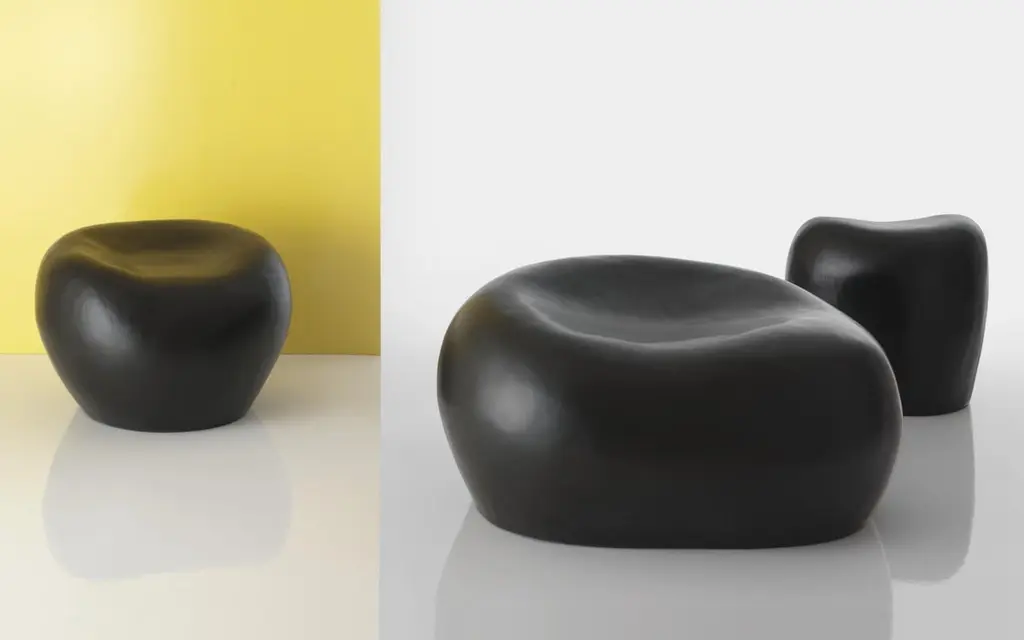 Ciottolo 06 by Imperfettolab1999Dimensions: W 162 x D 83 x H 54 cmMaterials: FiberglassAvalaible in black, white / gold, chrome.Imperfetto LabWho we are ? We are a family.Verter Turroni, Emanuela Ravelli and our children Elia, Margherita and Eusebio.All together, we are separate parts and their Expansion.The laboratory is in the care of Verter.From the sketch on paper he mixes materials, shapes and colours to the definition of the object.His intuitive and visionary research is performed with the complicity, recognition and practical support of his brother Erich.Emanuela is the voice of a vivid and silent work.She connects Imperfettolab with the other and with the rest of the world, respecting its nature and identity.She watches over its wholeness and authenticity.The playful spirit is entrusted to our children.They are the ones who test our works, certify their durability, functionality and enjoyment.We believe it is their expression, after all, that validates and makes our work universal.Since 1992, our thoughts and actions have moved, grown and taken shape in the land of Romagna.Between hills of cherry and olive trees, cultivated plains and piles of recyclable steel and iron.In between, the ancient Roman road via Emilia.A contrasting and mutating landscape that reflects in our furnishing sculptures.Ours is an open space, the times of art and life seamlessly merge.