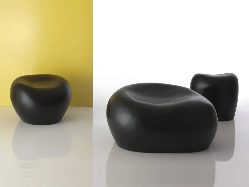 Ciottolo by Imperfettolab, 1999Dimensions: W 162 x D 83 x H 54 cmMaterials : FiberglassSeat in fibreglass.Avalaible in Black, White / Gold, Chrome.Imperfetto LabWho we are ? We are a family.Verter Turroni, Emanuela Ravelli and our children Elia, Margherita and Eusebio.All together, we are separate parts and their Expansion.The laboratory is in the care of Verter.From the sketch on paper he mixes materials, shapes and colours to the definition of the object.His intuitive and visionary research is performed with the complicity, recognition and practical support of his brother Erich.Emanuela is the voice of a vivid and silent work.She connects Imperfettolab with the other and with the rest of the world, respecting its nature and identity.She watches over its wholeness and authenticity.The playful spirit is entrusted to our children.They are the ones who test our works, certify their durability, functionality and enjoyment.We believe it is their expression, after all, that validates and makes our work universal.Since 1992, our thoughts and actions have moved, grown and taken shape in the land of Romagna.Between hills of cherry and olive trees, cultivated plains and piles of recyclable steel and iron.In between, the ancient Roman road via Emilia.A contrasting and mutating landscape that reflects in our furnishing sculptures.Ours is an open space, the times of art and life seamlessly merge.