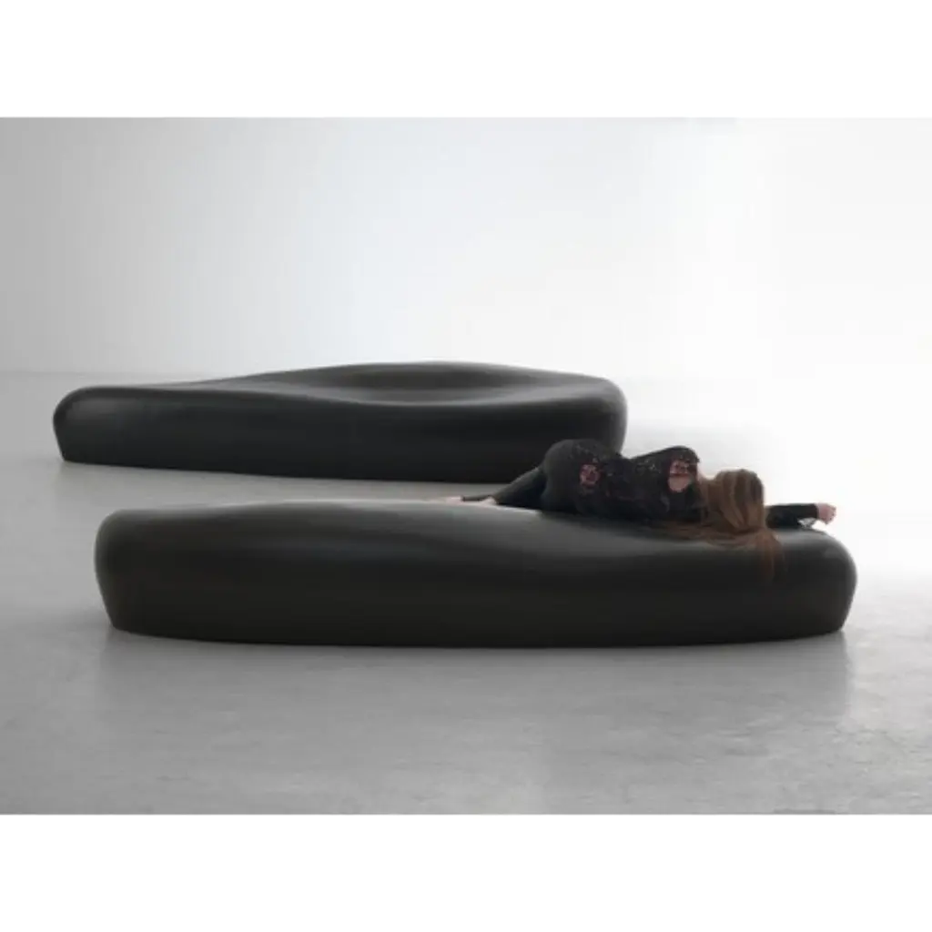 Ciottolo#1 by Imperfettolab2017Dimensions: W 272 x D 125 x H 50 cmMaterials: FiberglassVarnished seat in fibreglass.Imperfetto labWho we are ? We are a family.Verter Turroni, Emanuela Ravelli and our children Elia, Margherita and Eusebio.All together, we are separate parts and their expansion.The laboratory is in the care of Verter.From the sketch on paper he mixes materials, shapes and colours to the definition of the object.His intuitive and visionary research is performed with the complicity, recognition and practical support of his brother Erich.Emanuela is the voice of a vivid and silent work.She connects Imperfettolab with the other and with the rest of the world, respecting its nature and identity.She watches over its wholeness and authenticity.The playful spirit is entrusted to our children.They are the ones who test our works, certify their durability, functionality and enjoyment.We believe it is their expression, after all, that validates and makes our work universal.Since 1992, our thoughts and actions have moved, grown and taken shape in the land of Romagna.Between hills of cherry and olive trees, cultivated plains and piles of recyclable steel and iron.In between, the ancient Roman road via Emilia.A contrasting and mutating landscape that reflects in our furnishing sculptures.Ours is an open space, the times of art and life seamlessly merge.