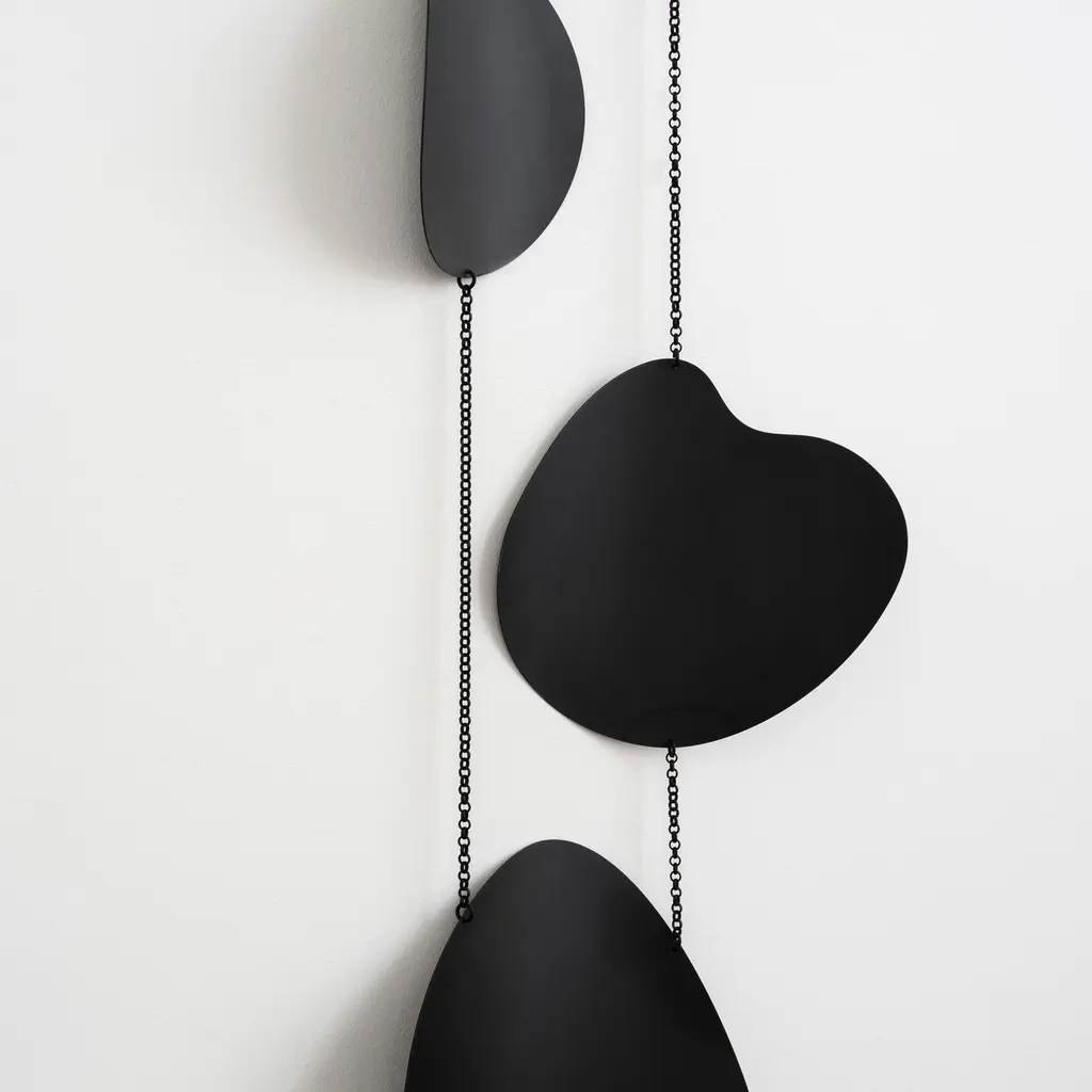 Inspired by the worn shapes of river rocks. Its top bar hides the hanging hardware. Display on its own or with other Circle & Line pieces and make a statement. Handcrafted for a one-of-a-kind piece.