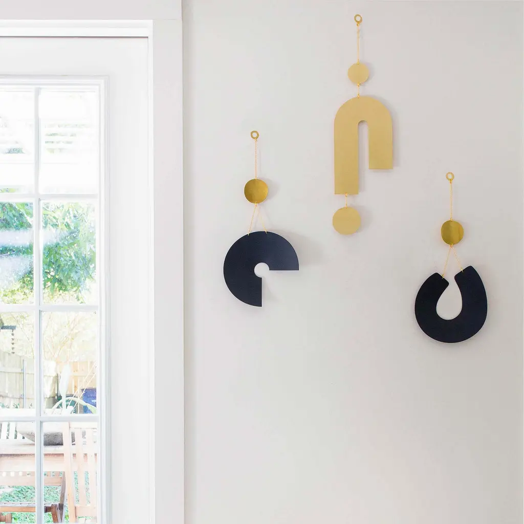 Circle & Line is a woman-owned and -operated design studio that produces thoughtful, one-of-a-kind home goods with the belief that each of its pieces should reflect the aesthetic of any space. Sculptural silhouettes made from brass enchant in this wall hanging, a modern addition to a living room or nursery.