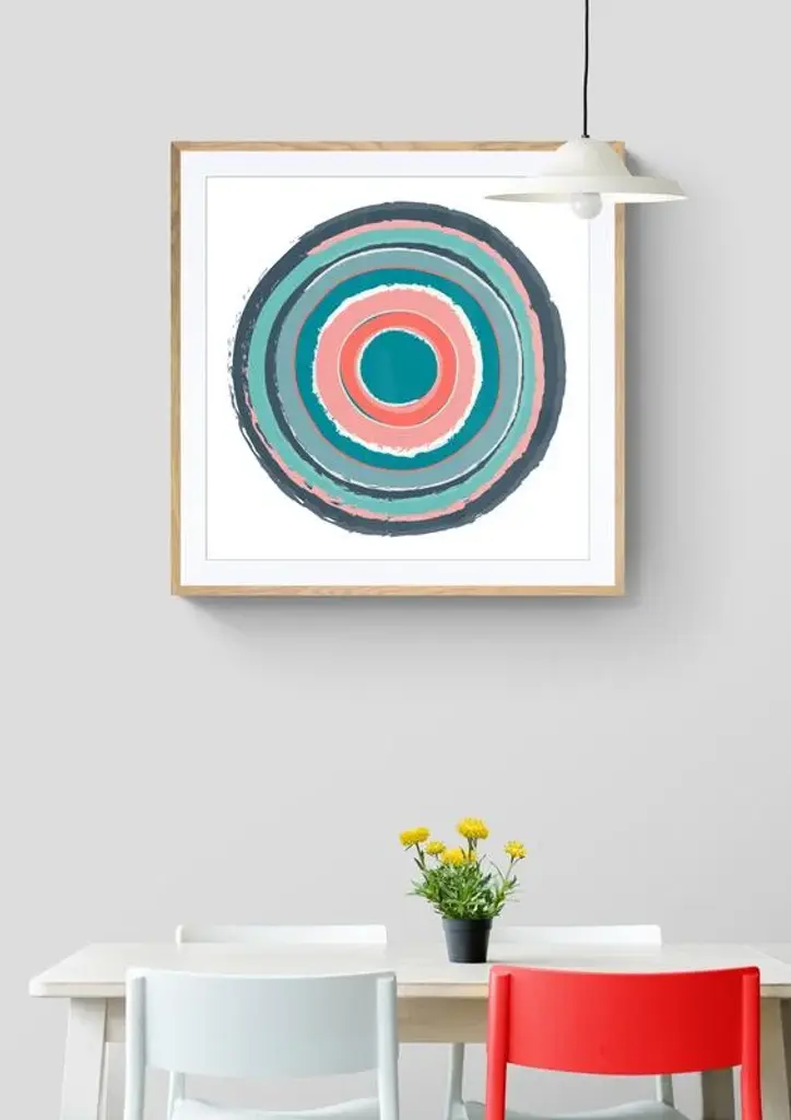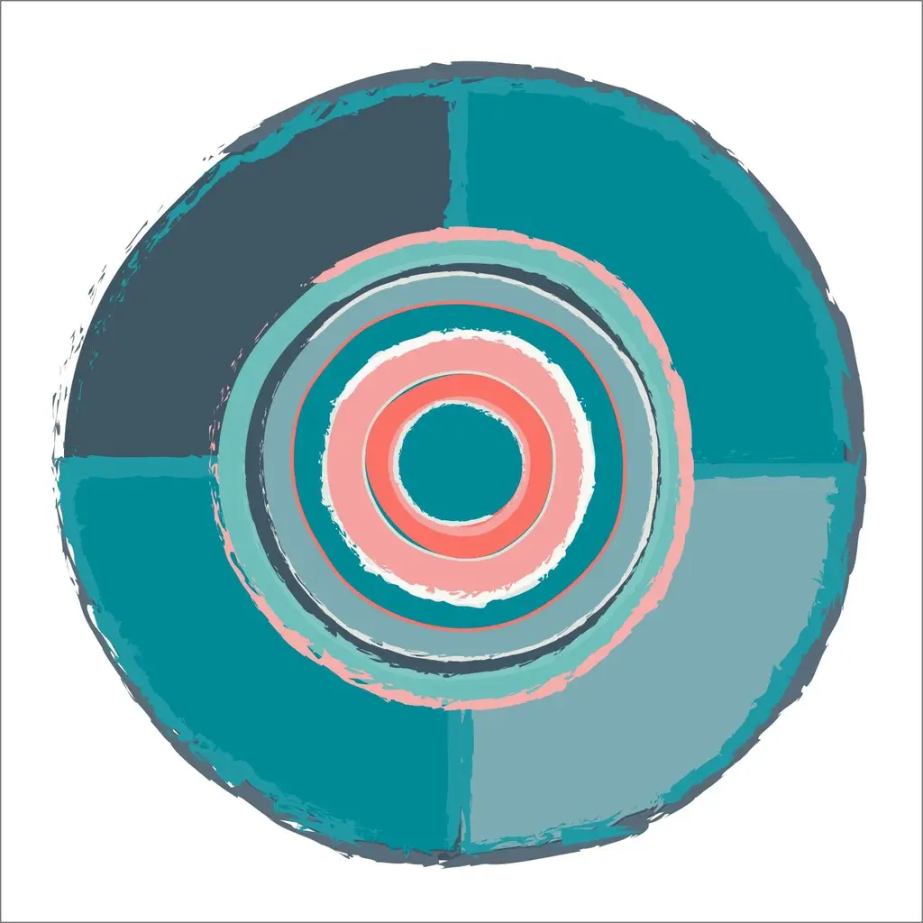 "Circles In Coral And Teal" Contemporary Fine Art Print By Melinda Cox 24" X 24"