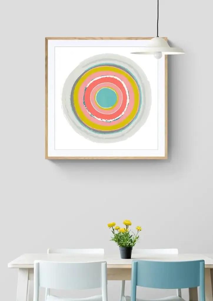 "Circles In Yellow And Pink" Contemporary Fine Art Print By Melinda Cox 20" X 20"