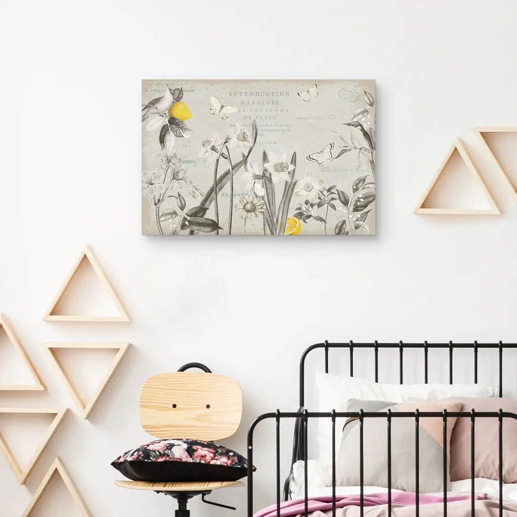 Citron Curiosities I by Katie Pertiet Canvas Art Print is produced with printing that covers the entirety of the canvas for a sleek and stylish museum-quality look. Our framed prints are made by expert craftsmen who strive to make each canvas the masterpiece