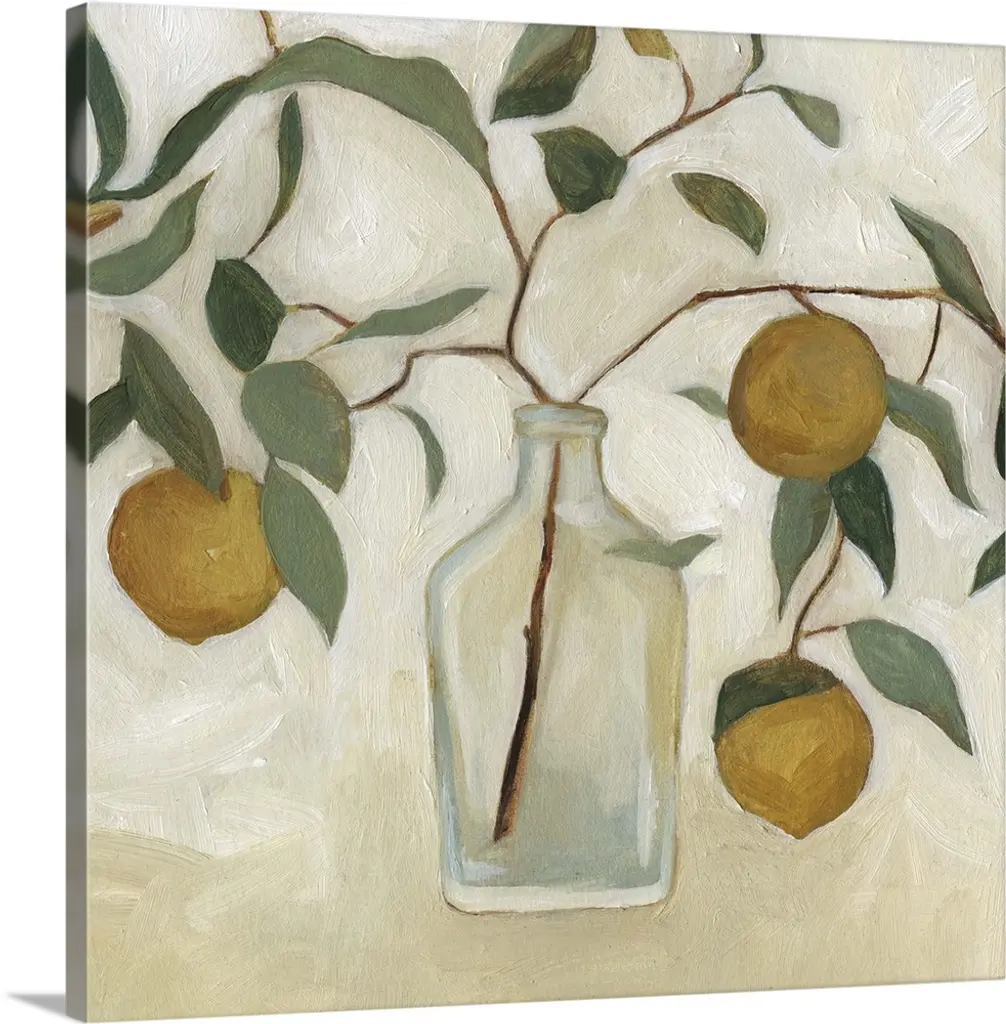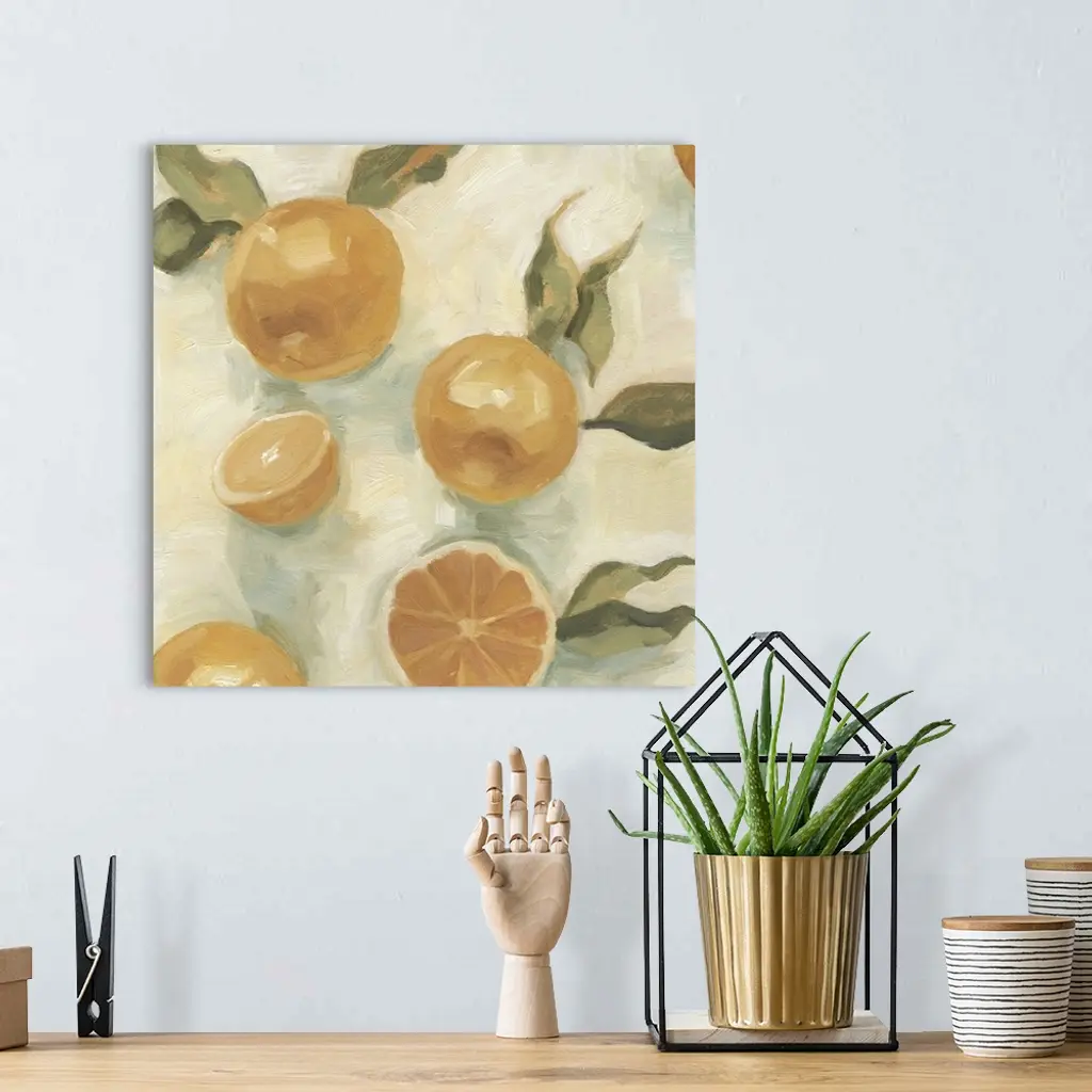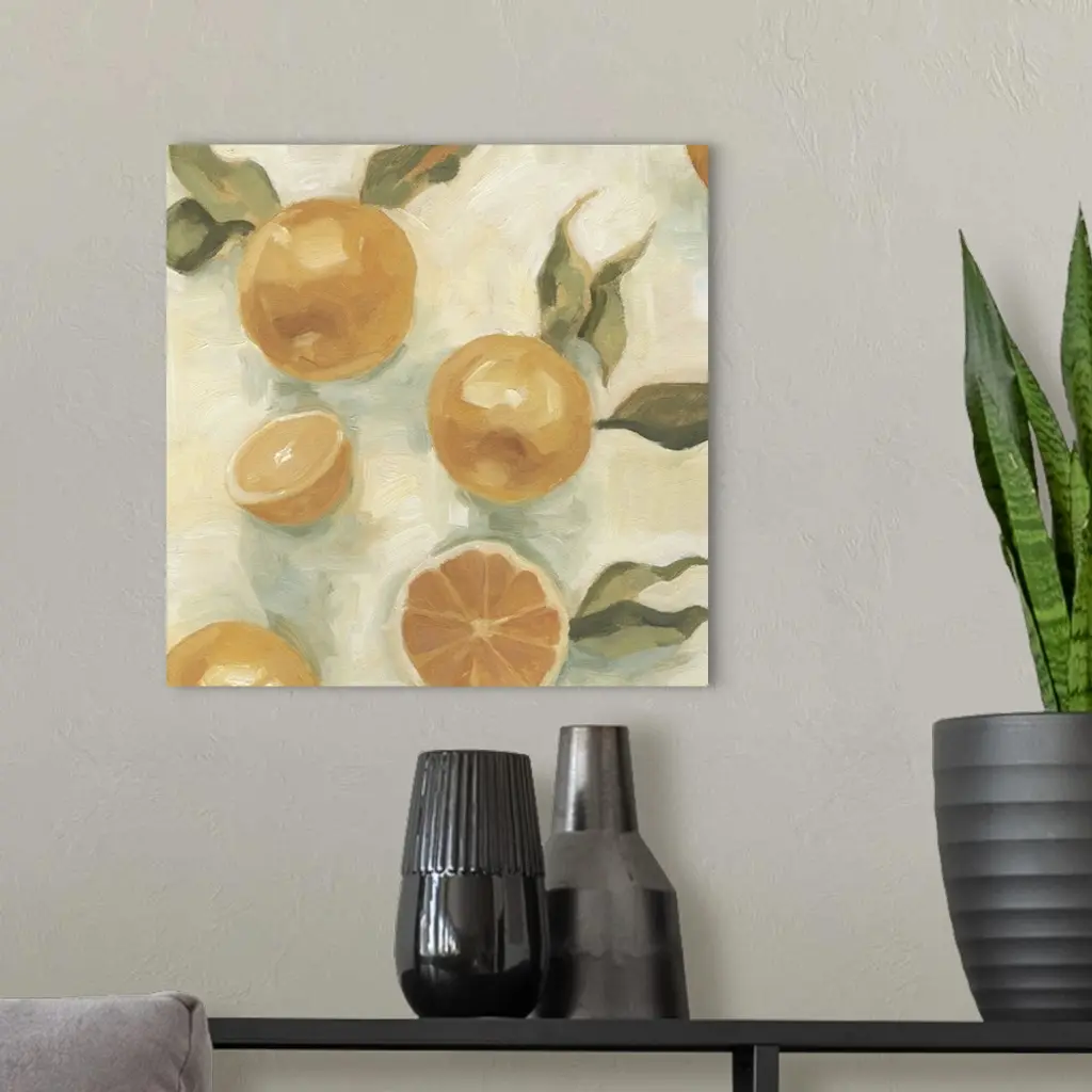 Contemporary artwork of sliced oranges created with thick brush strokes.