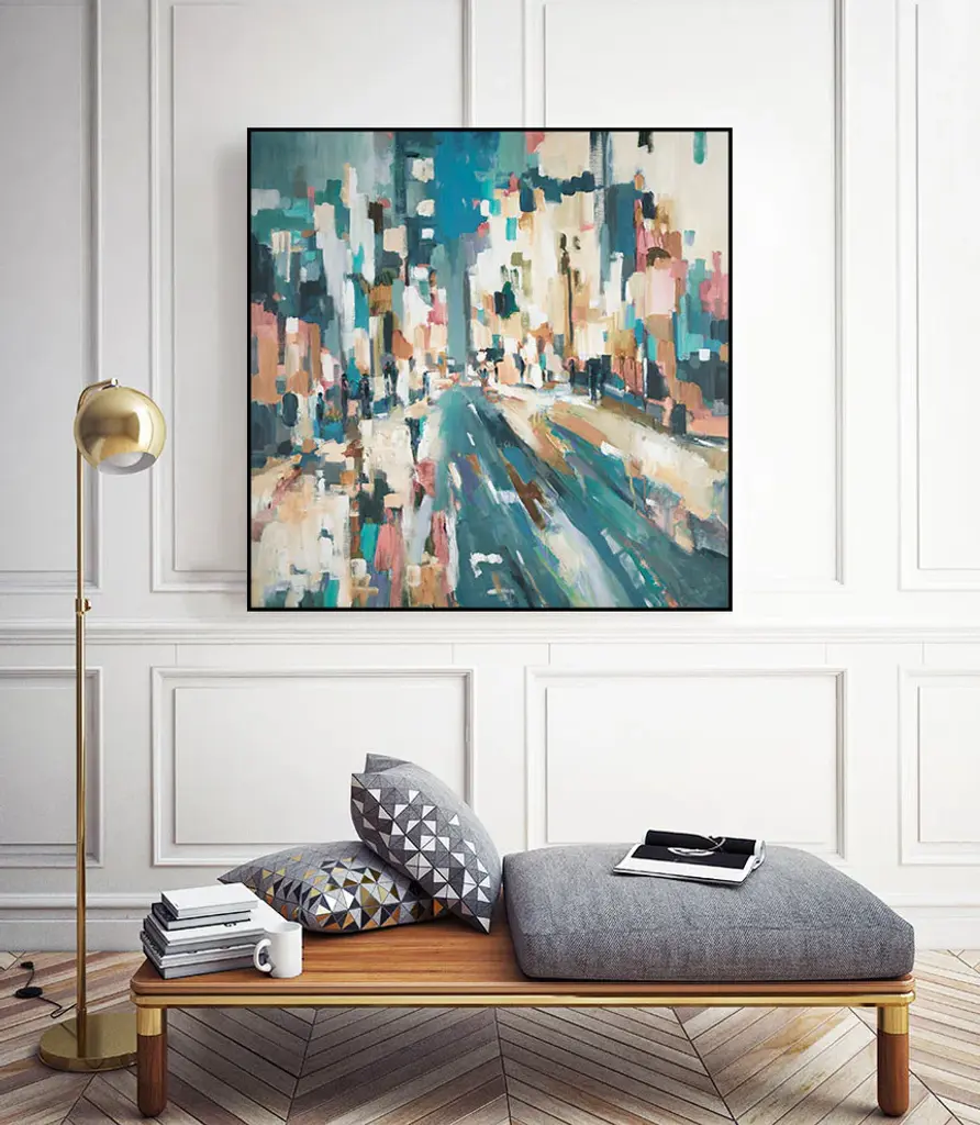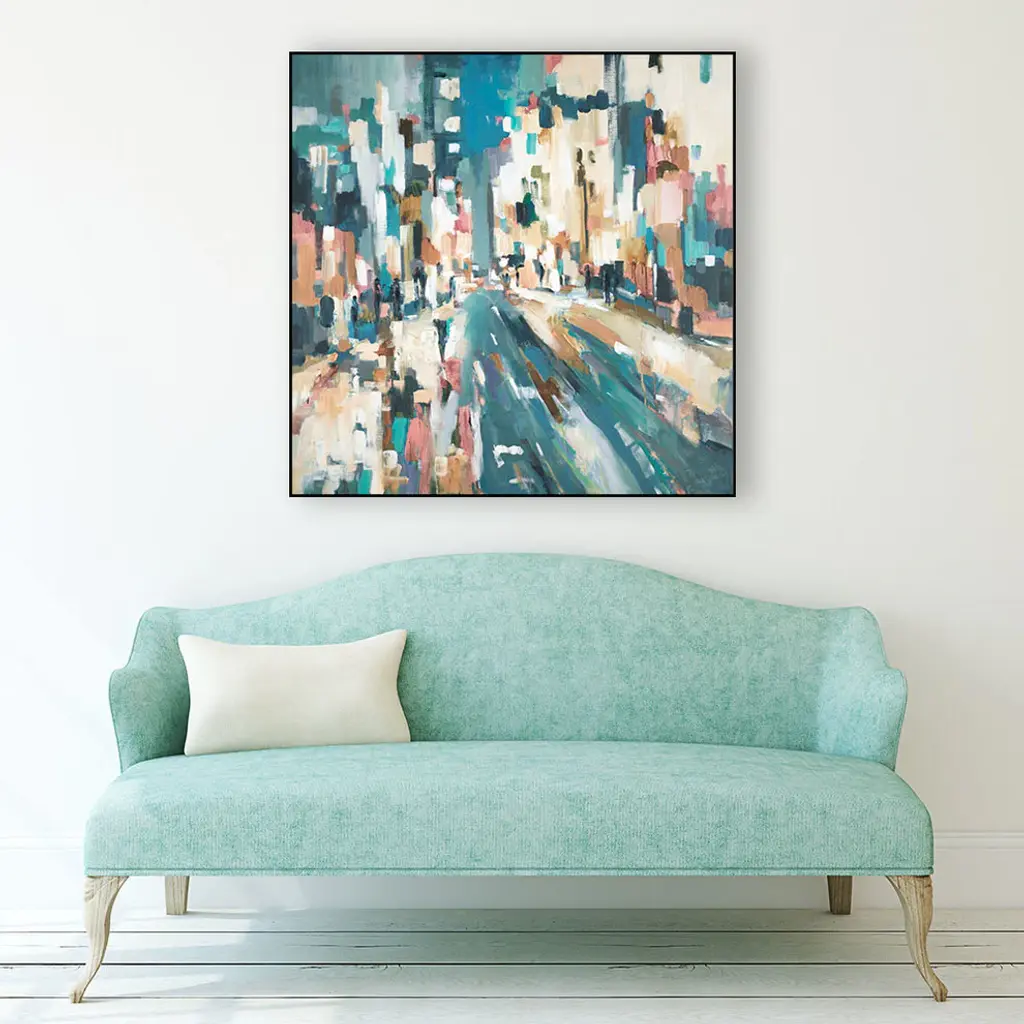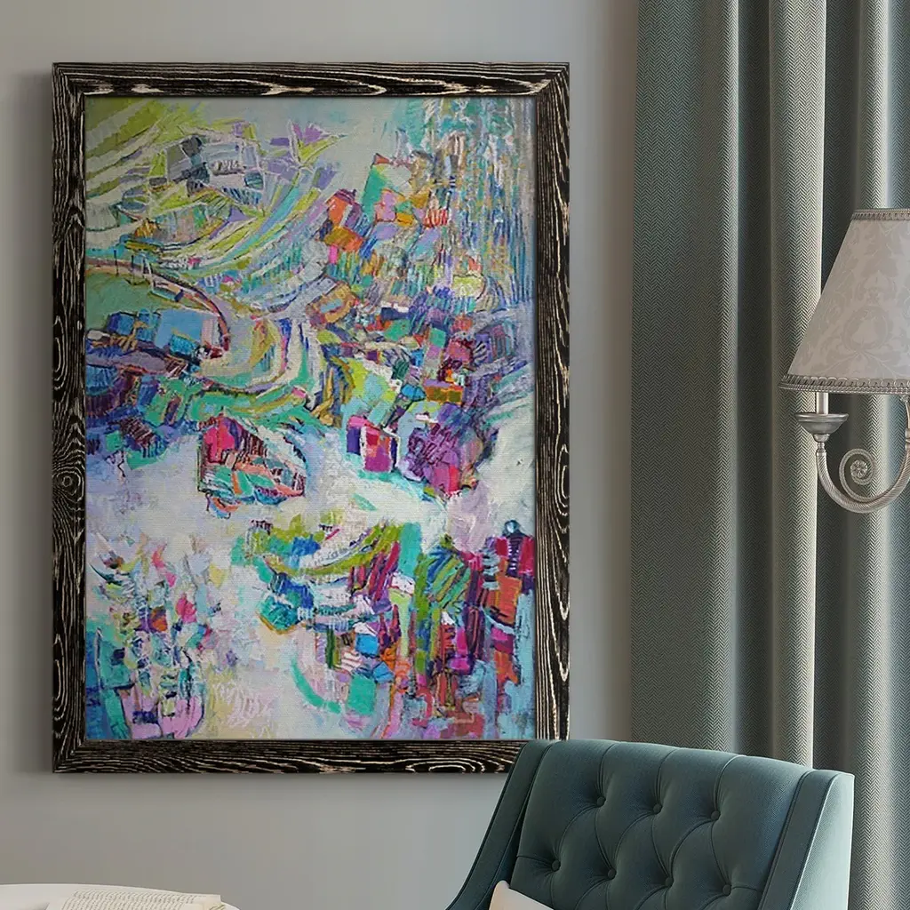 Your ready to hang artwork is printed on canvas then stretched and mounted to a 2-inch thick - hand stained black wood frame. Arrives at your door complete with an easy to use self-leveling hangking kit.