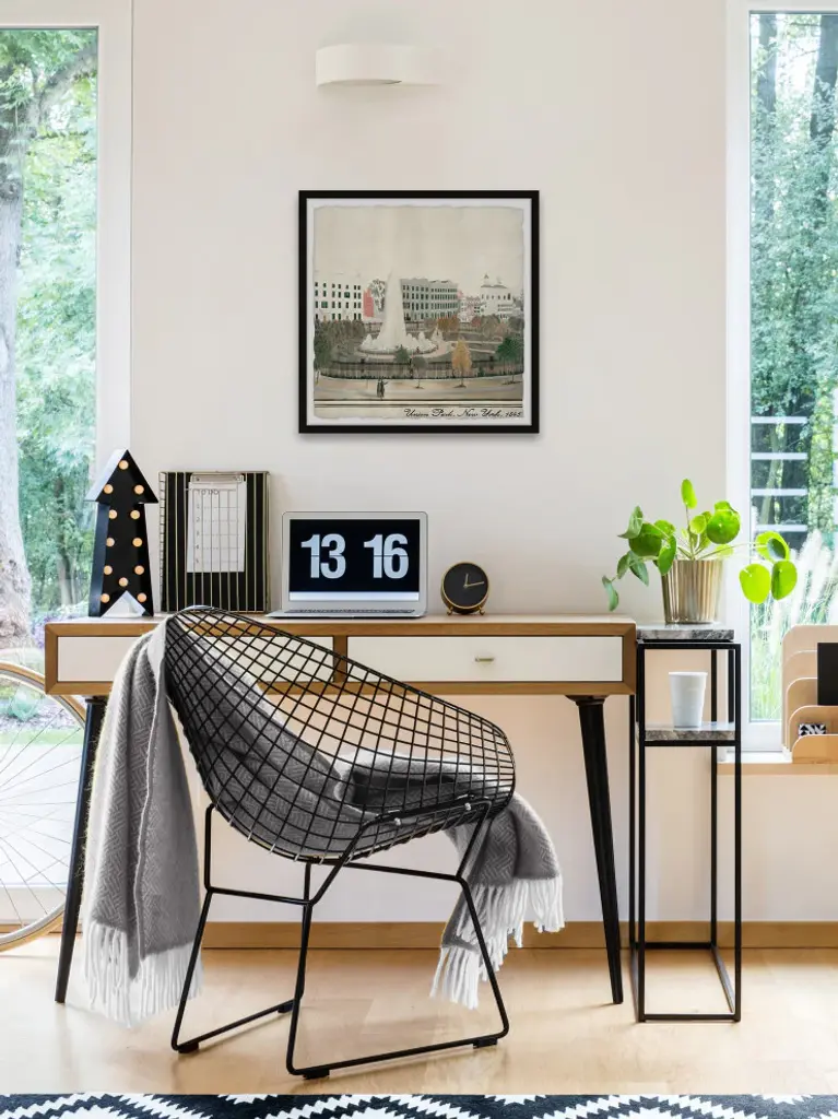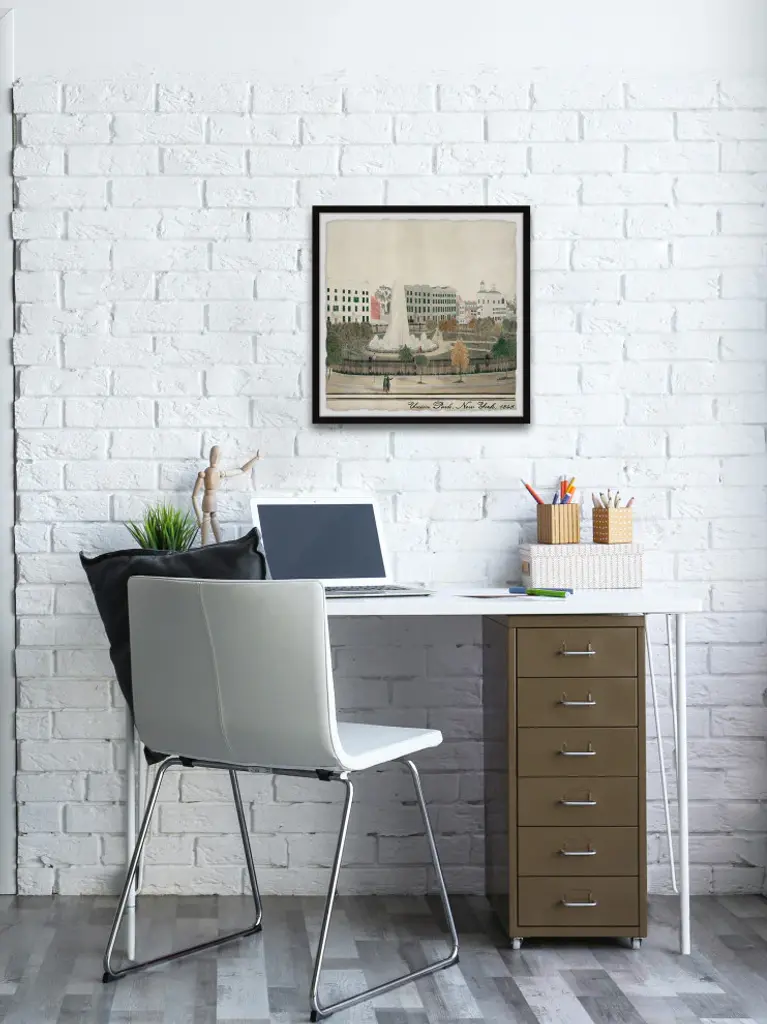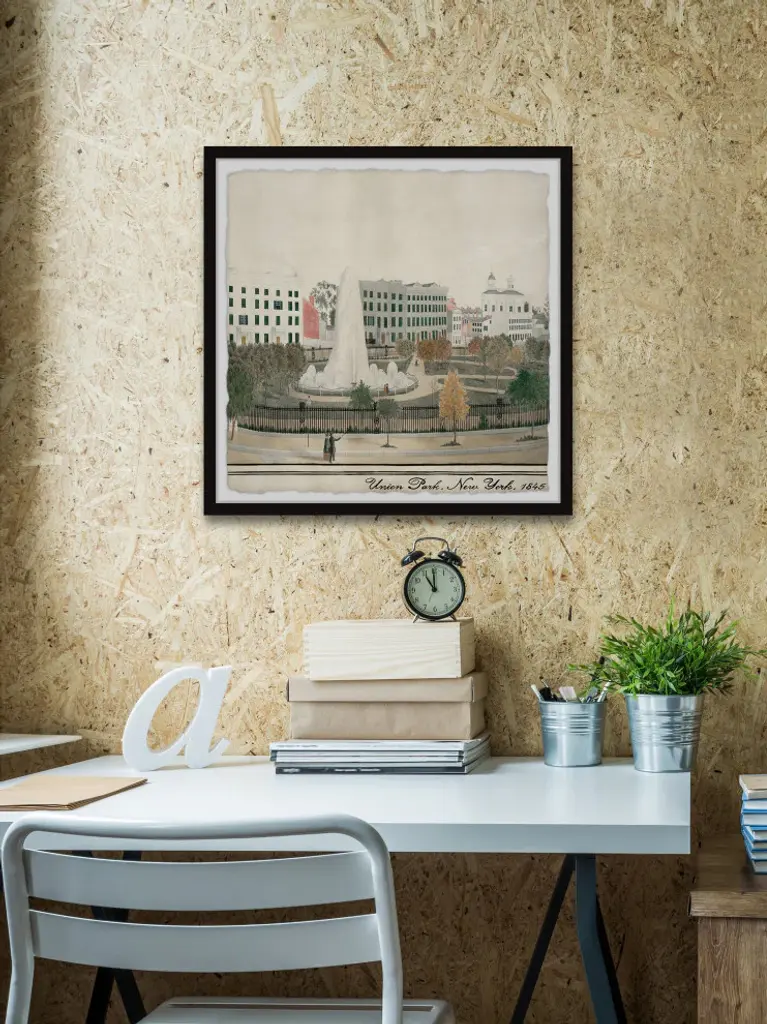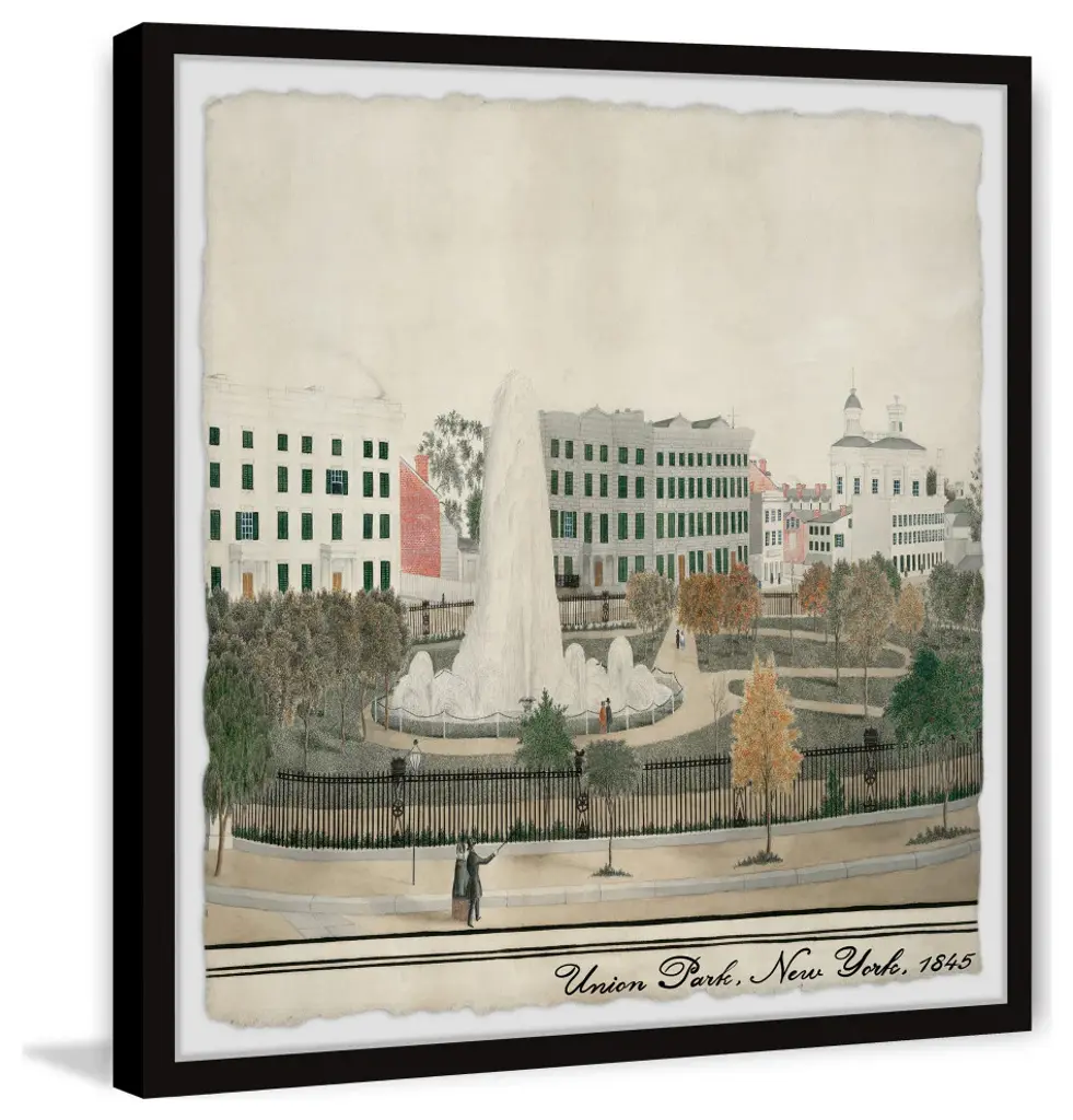 This print features Union Park, New York in 1845 with one passerby making their way throughout the walkway. Proudly printed in the USA, this piece is printed on high quality archive paper and professionally hand-framed. With wall-mounting hooks included, this artful accent is ready to hang up as soon as it reaches your front door.- Top quality Gicle print on high resolution Archive Paper- Hand cut deckled edges- High quality durable non-warping frame- Finished under shatter resistant plexiglass- Arrives ready to hang- Includes a certificate of authenticity- Printed in the USA