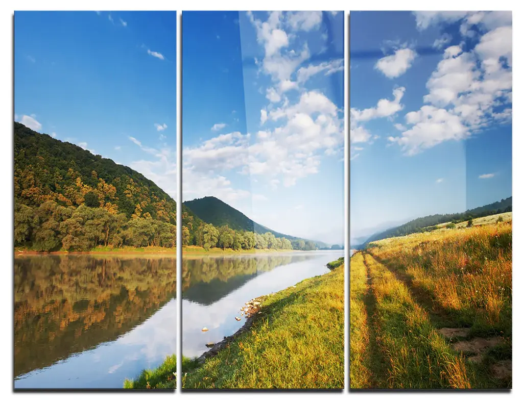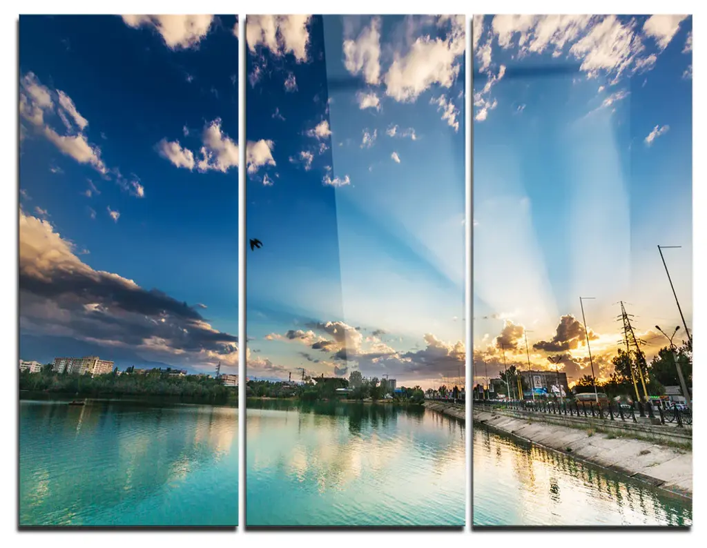 "City Lake With Cloud Reflection" Photo Metal Wall Art, 3 Panels, 36"x28"