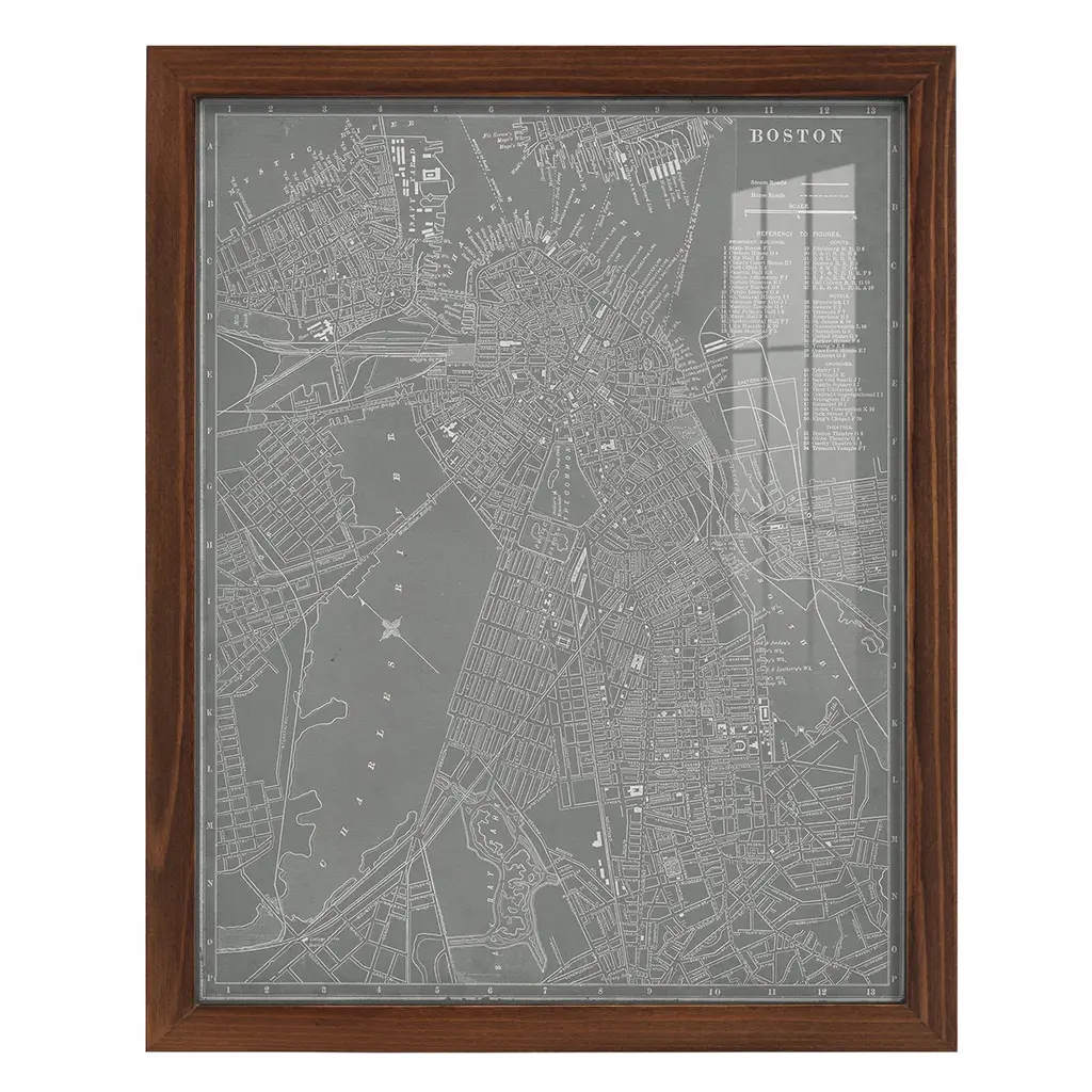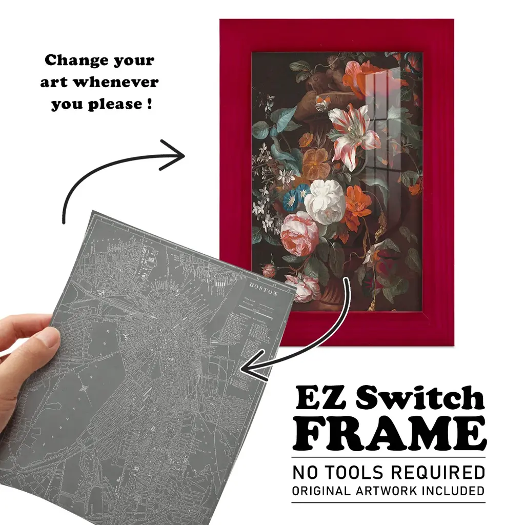 City Map of Boston -EZ SWITCH Framed Print w/glass-Cherry Red A delightful, framed print. Featuring a solid wood frame with real wood glass. This premium print is giclee quality. In addition, every frame features a removable back and table top stand. This allows you to change your art in the future or to just stand the art on a table for a new look. We are sure you'll enjoy our new series of EZ SWITCH Framed Art. Solid Wood Frame Real Glass Removable / Replaceable Art Built in Tabletop Stand Sizes range from 4x6 up to 12x15 - buy just one or pair them up as sets as you see fit.