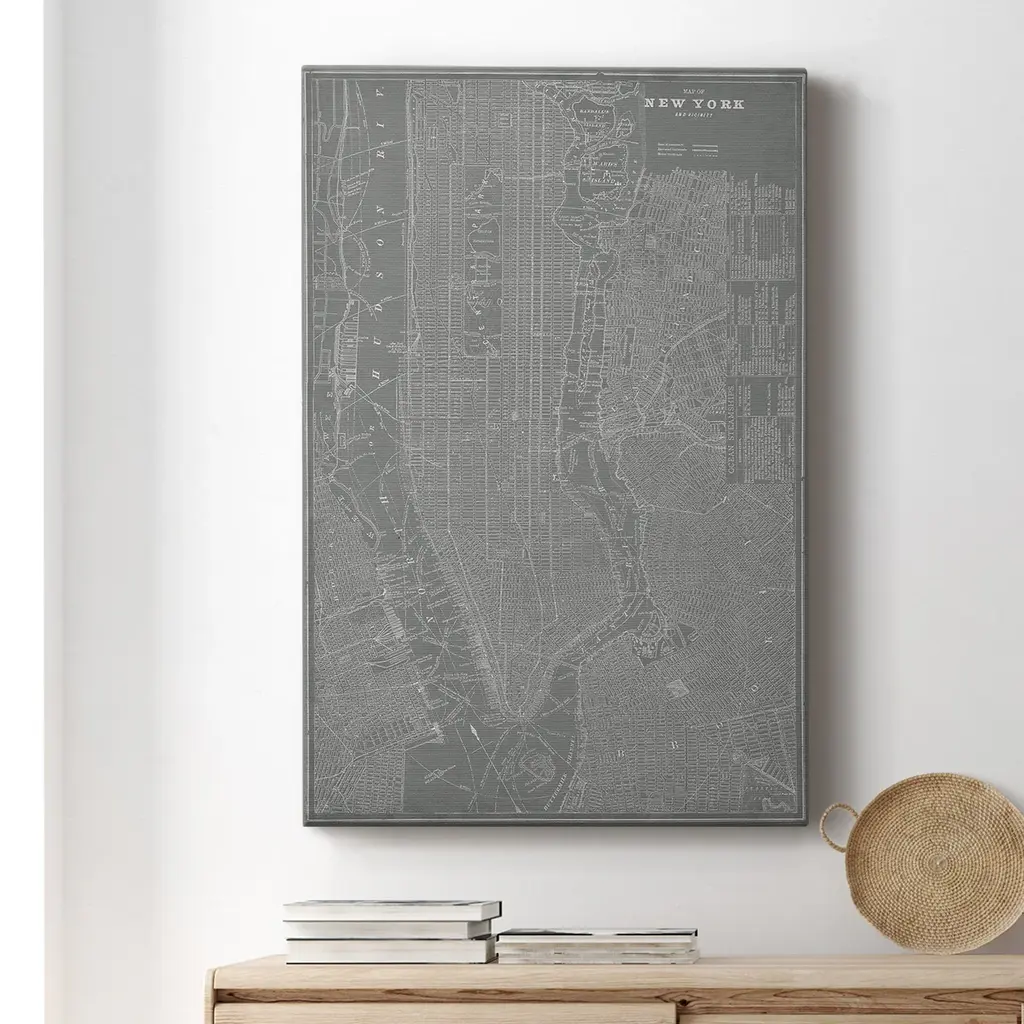 City Map of New York Premium Gallery Wrapped Canvas - Ready to Hang A premium hand stretched gallery wrapped canvas print created to last. Featuring a beveled a solid wood stretcher bar, each piece comes ready to hand 6 SIZES AVAILABLE 8''X12'' - Overall Size 12''X18'' - Overall Size 18''X27'' - Overall Size 24''x36'' - Overall Size 32''x48'' - Overall Size 40''x60'' - Overall Size Each piece is made to order. Built to Last Each piece comes ready to hang Solid wood stretcher Fade and Water resistant Made domestically