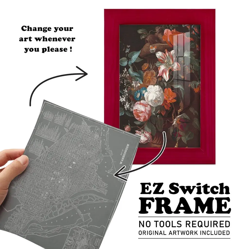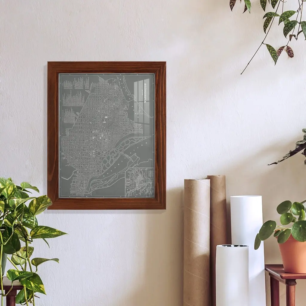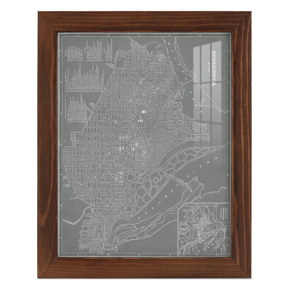 City Map of Washington D.C. -EZ SWITCH Framed Print w/glass-Cherry Red A delightful, framed print. Featuring a solid wood frame with real wood glass. This premium print is giclee quality. In addition, every frame features a removable back and table top stand. This allows you to change your art in the future or to just stand the art on a table for a new look. We are sure you'll enjoy our new series of EZ SWITCH Framed Art. Solid Wood Frame Real Glass Removable / Replaceable Art Built in Tabletop Stand Sizes range from 4x6 up to 12x15 - buy just one or pair them up as sets as you see fit.