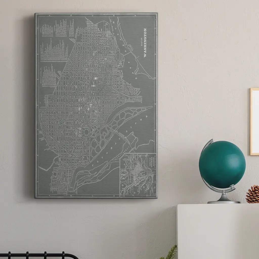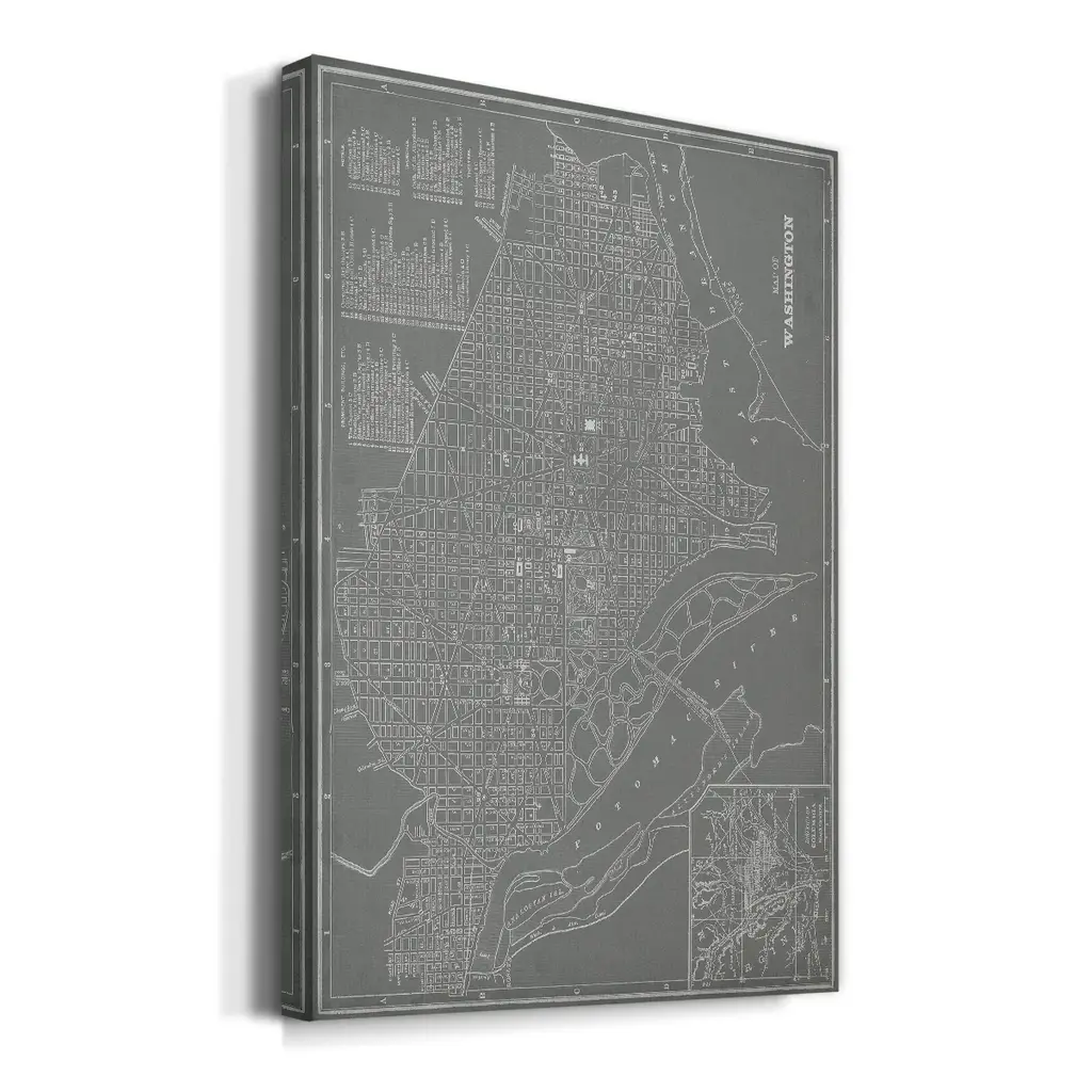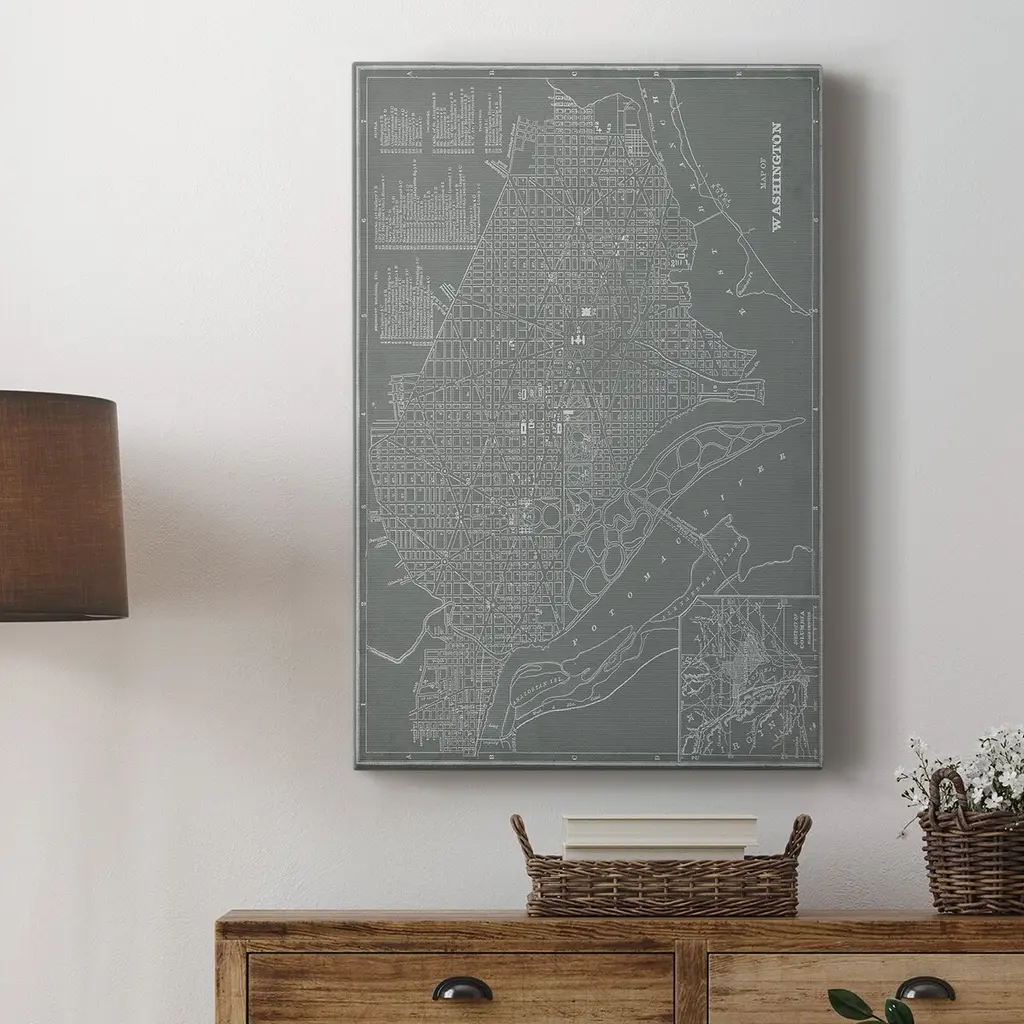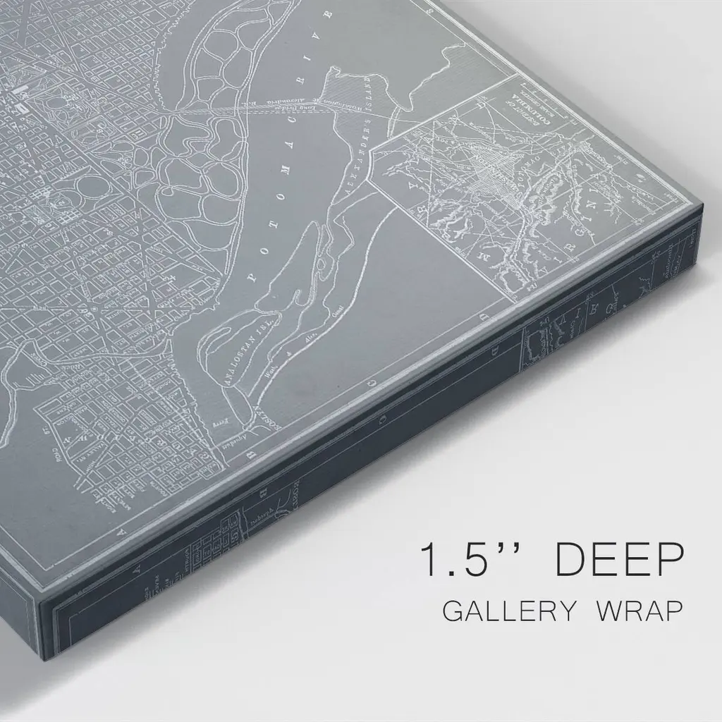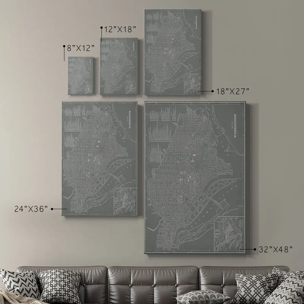 City Map of Washington D.C. Premium Gallery Wrapped Canvas - Ready to Hang A premium hand stretched gallery wrapped canvas print created to last. Featuring a beveled a solid wood stretcher bar, each piece comes ready to hand 6 SIZES AVAILABLE 8''X12'' - Overall Size 12''X18'' - Overall Size 18''X27'' - Overall Size 24''x36'' - Overall Size 32''x48'' - Overall Size 40''x60'' - Overall Size Each piece is made to order. Built to Last Each piece comes ready to hang Solid wood stretcher Fade and Water resistant Made domestically