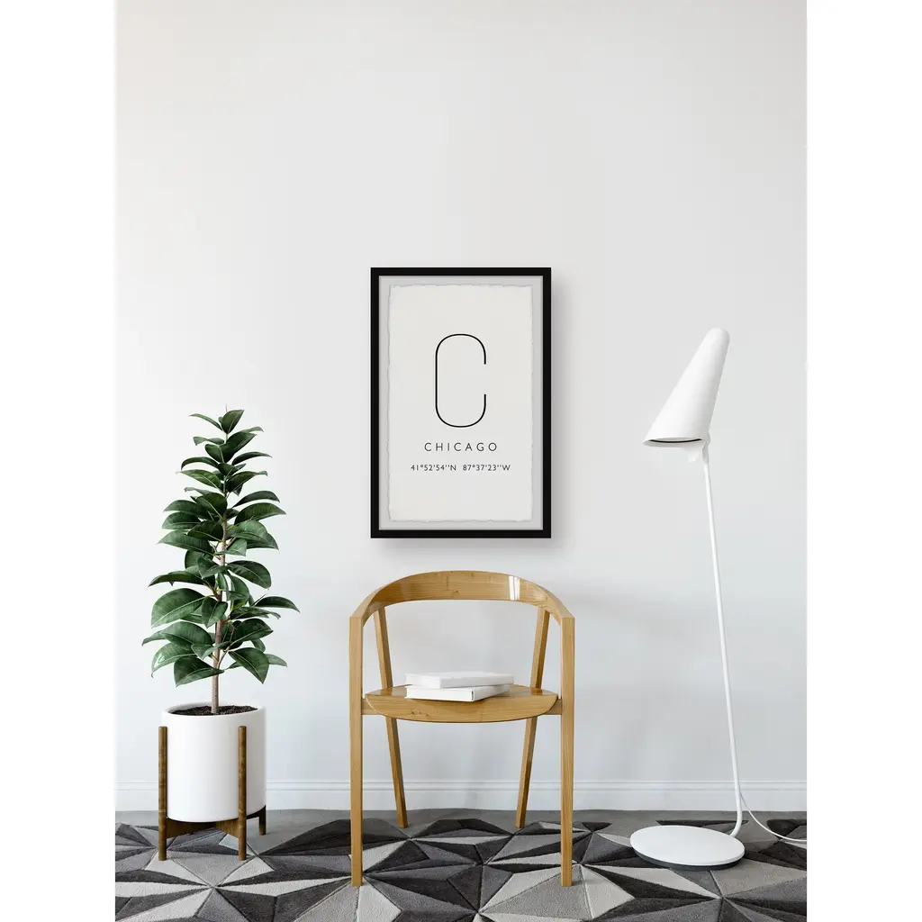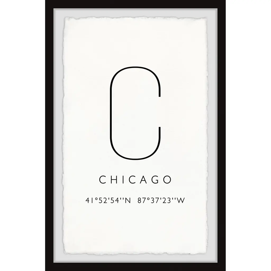 This simple, textual print features the name of Chicago and its coordinates on the map. Proudly printed in the USA, this piece is printed on high quality archive paper and professionally hand-framed. With wall-mounting hooks included, this artful accent is ready to hang up as soon as it reaches your front door. • Top quality Giclee print on high resolution Archive Paper • Hand cut deckled edges • High quality durable non-warping frame • Finished under shatter resistant plexiglass • Arrives ready to hang • Includes a certificate of authenticity • Printed in the USA