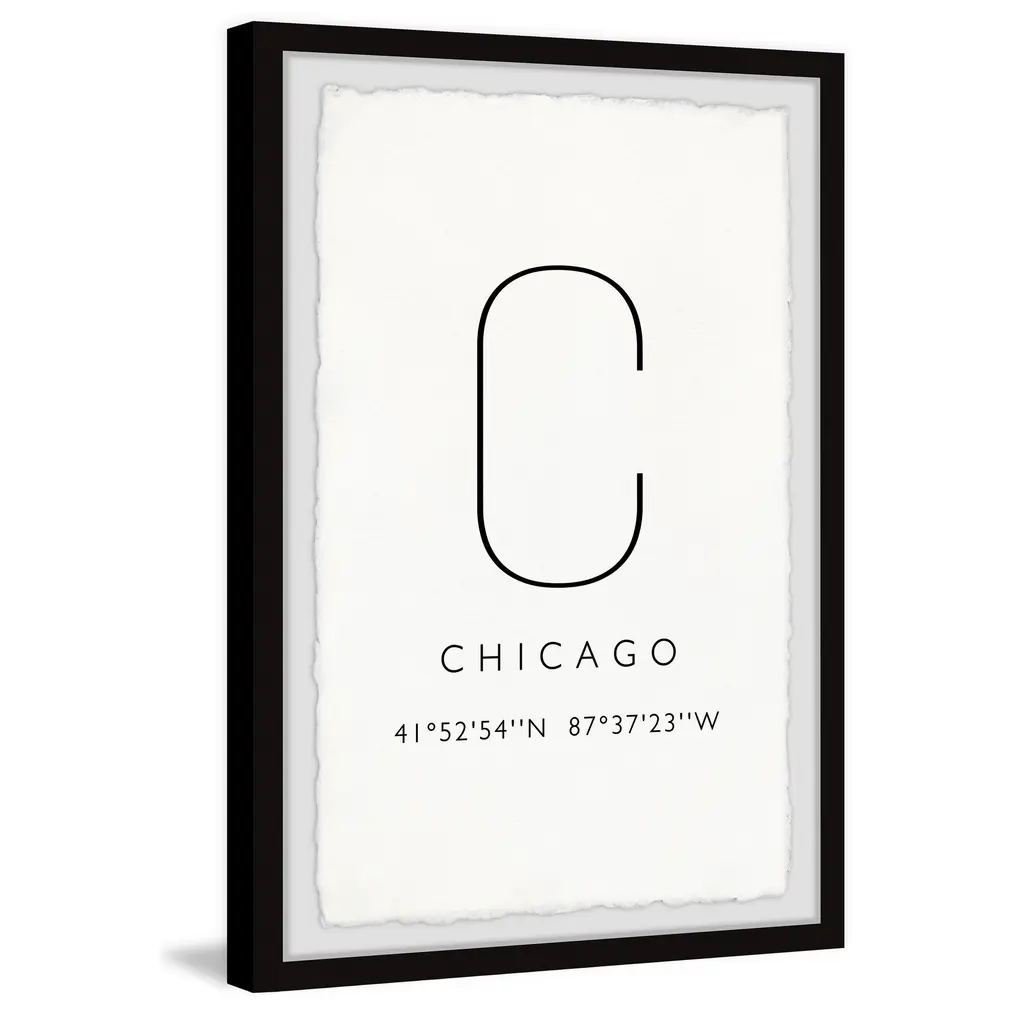 This simple, textual print features the name of Chicago and its coordinates on the map. Proudly printed in the USA, this piece is printed on high quality archive paper and professionally hand-framed. With wall-mounting hooks included, this artful accent is ready to hang up as soon as it reaches your front door. • Top quality Giclee print on high resolution Archive Paper • Hand cut deckled edges • High quality durable non-warping frame • Finished under shatter resistant plexiglass • Arrives ready to hang • Includes a certificate of authenticity • Printed in the USA
