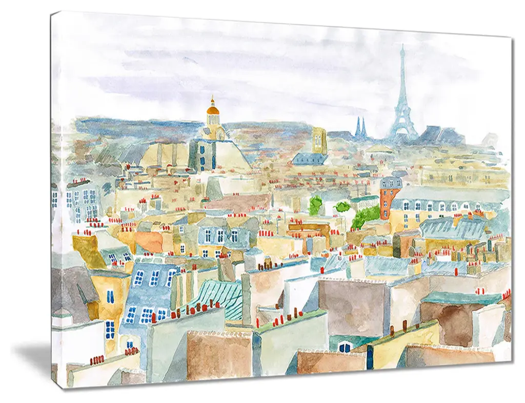 The City of Paris canvas art print is sure to make an impression on anyone who sees it. This artwork is gallery wrapped around a 1-inch solid wood frame and arrives carefully packaged and entirely ready to hang on the wall. Design Art only uses the highest resolution and pigments to ensure a crisp colorful print that is never faded or pixelated. This artwork is sure to be a conversation starter in any home or office.