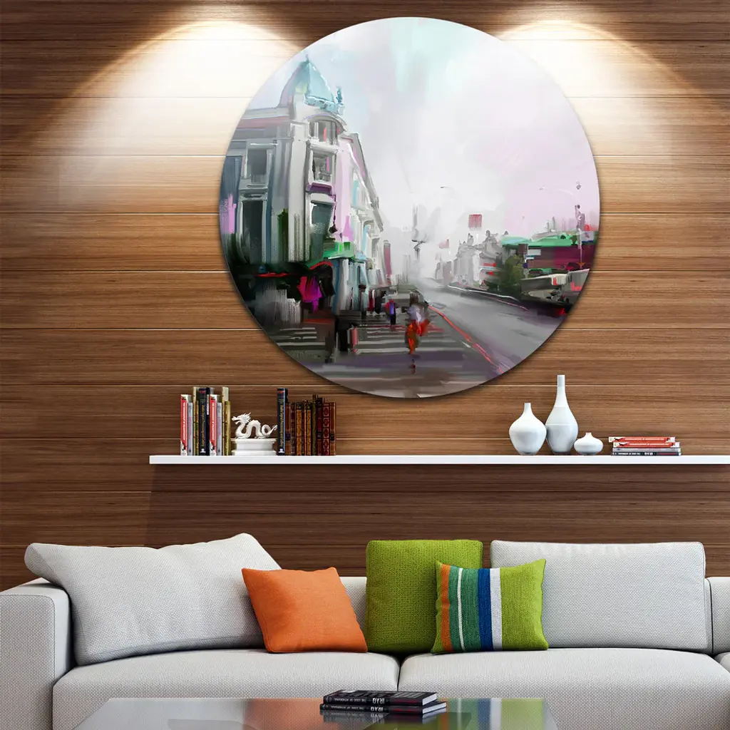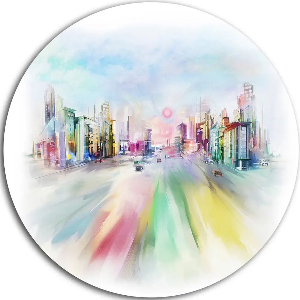 Bring Contemporary Abstraction to your home with this large Circle Metal wall art. This City Street Metal Artwork makes it the focal point of any room or office. - White Gloss Coating ensures colors are extra vibrant with light reflection.- Aluminum grade Sheet Metal with 1 inch mounting frame on the back giving the illusion that the artwork is floating on the wall..- Mounting Brackets are included along with instructions.- High Quality Digital images are created directly into a glossy aluminum panel producing a stunning and captivating print into the glossy finish of the metal.- Water, Fire and Scratch resistant HD Aluminum panels.- Looks better than any photo paper and guaranteed to last at least 20 years- Easy to clean with a microfiber cloth. Colors are far superior to regular Canvas Art. - Easy to Hang