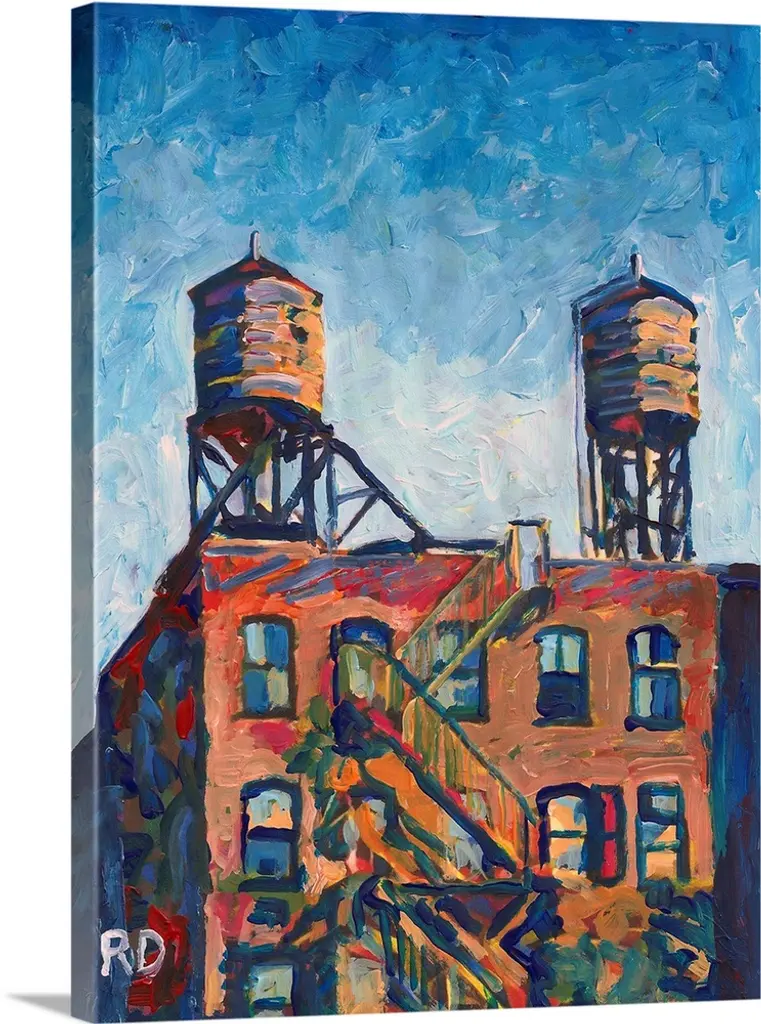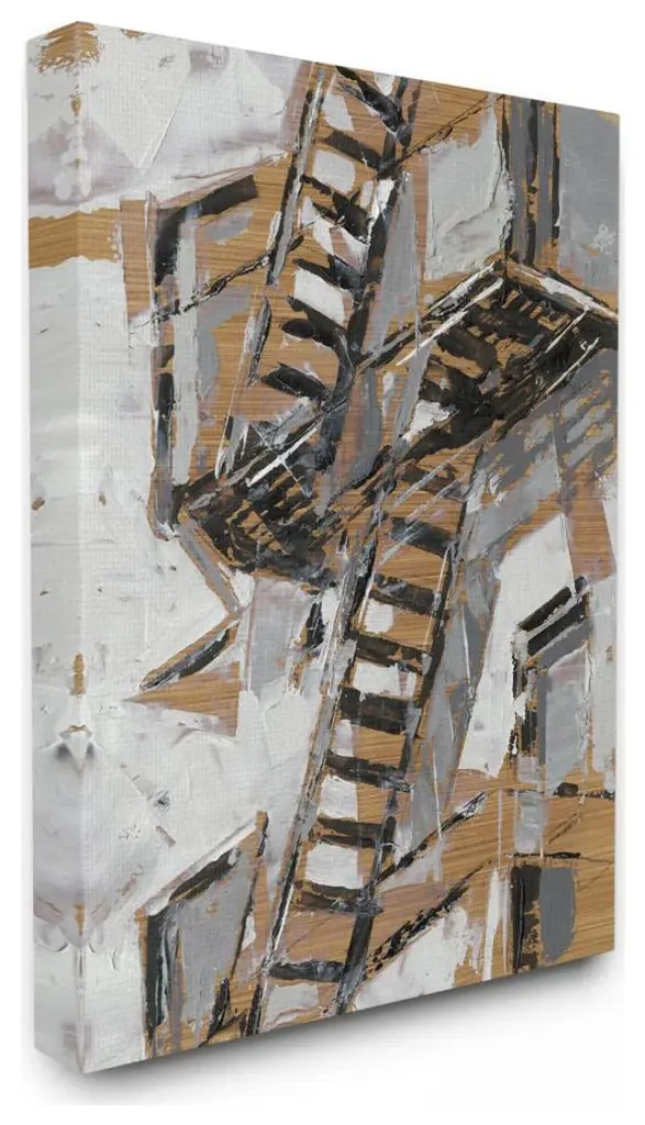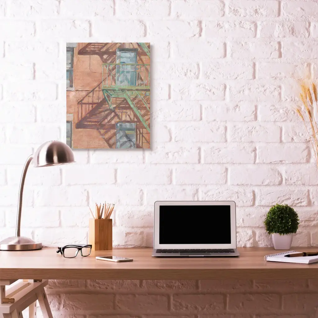 Cityscape Fire Escape Red Green Painting, 24"x30"