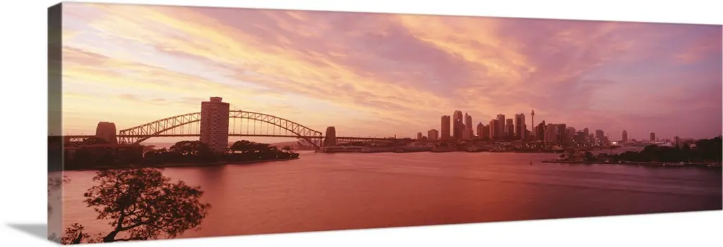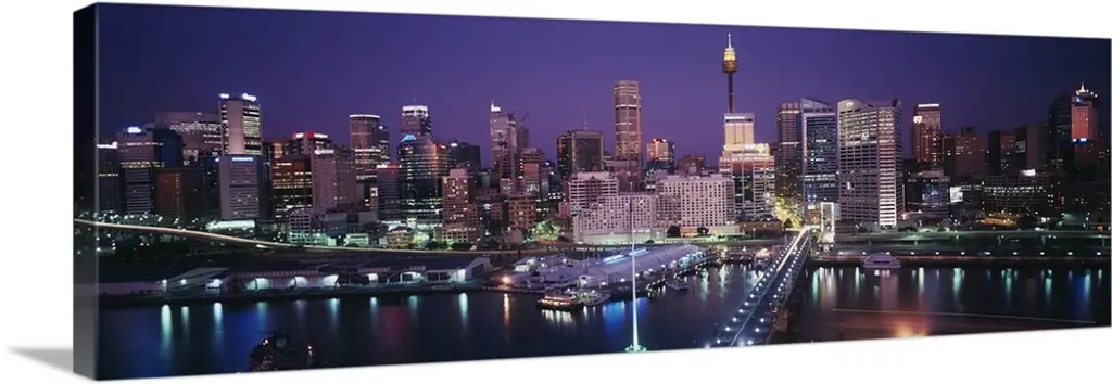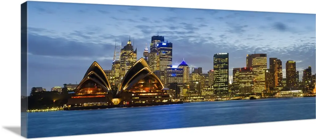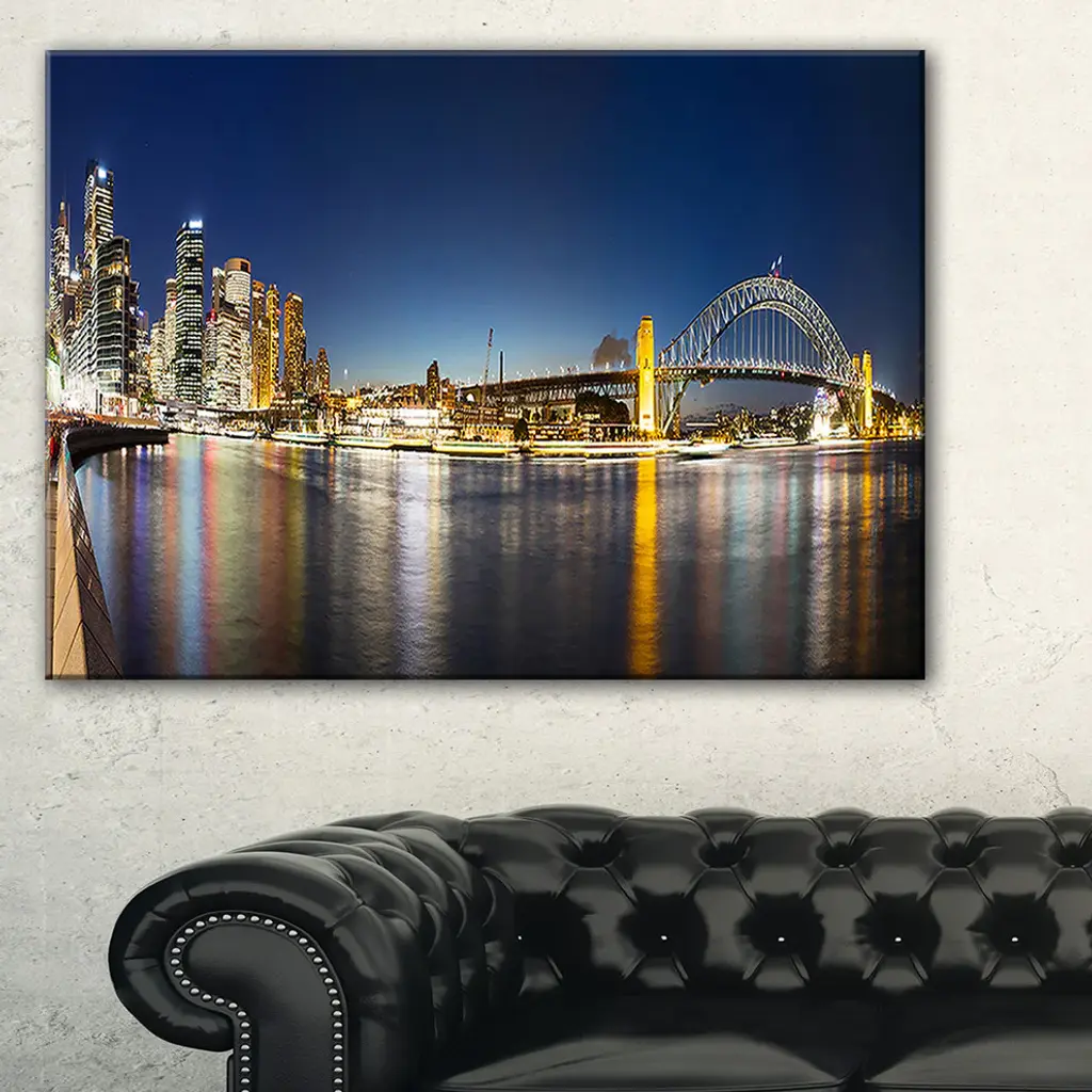 The Cityscape Sydney Nightfall Panorama canvas art print is sure to make an impression on anyone who sees it. This artwork is gallery wrapped around a 1-inch solid wood frame and arrives carefully packaged and entirely ready to hang on the wall. Design Art only uses the highest resolution and pigments to ensure a crisp colorful print that is never faded or pixelated. This artwork is sure to be a conversation starter in any home or office.