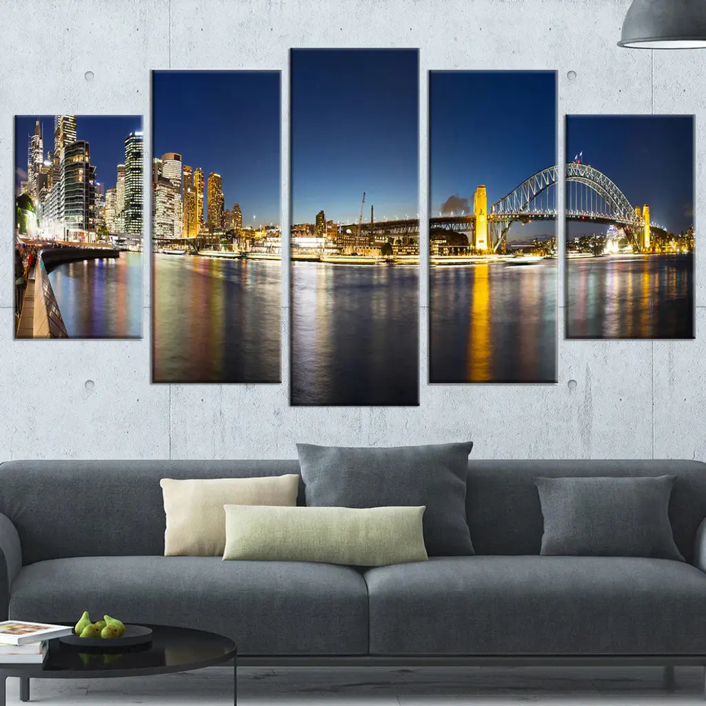 "Cityscape Sydney Nightfall" Panorama Canvas Print60"x32", 5-Panels