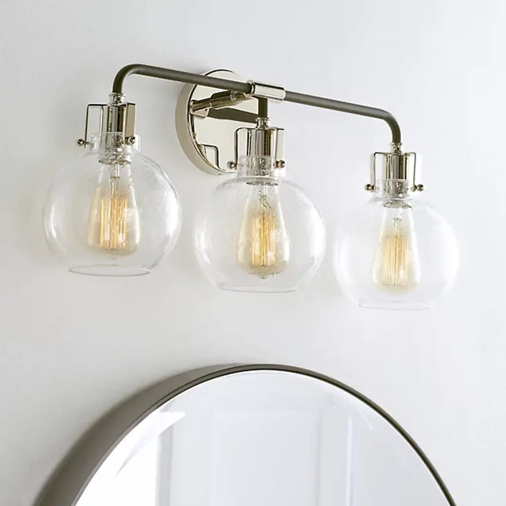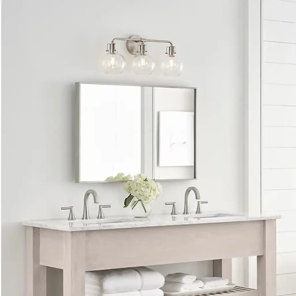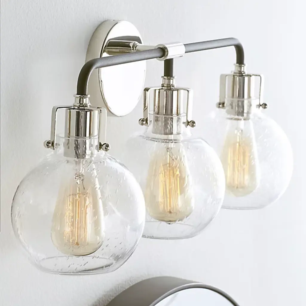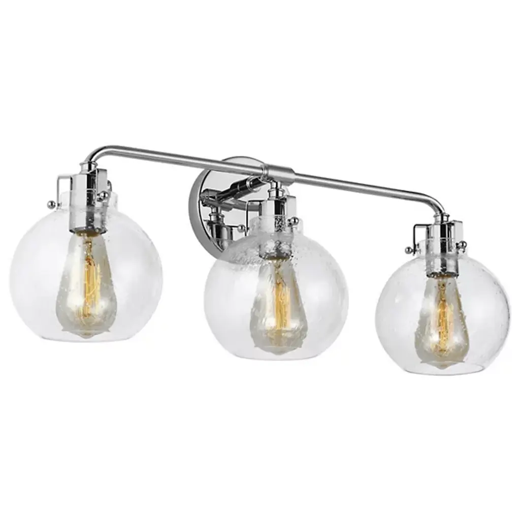 A clear choice for bringing both grit and glamour to your bathroom setting. The Clara Vanity Light by Visual Comfort Studio, formerly known as Sean Lavin, is both rugged and upscale, due to a mixture of aesthetic elements that will please you no matter your artistic inclination. Multiple Clear Seeded Glass shades are suspended form a multi-pronged stem, providing both transparency and a subtly rough texture. In contrast with the Glass shades, the Steel stem is monochromatic and metallic, bringing grit and luster to the aesthetic.