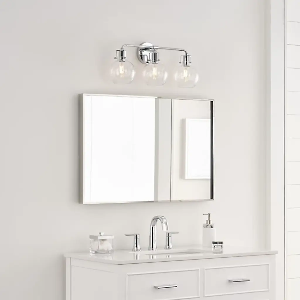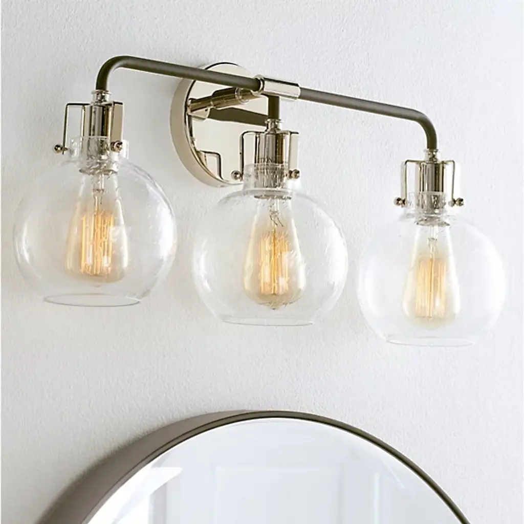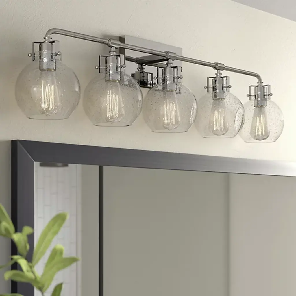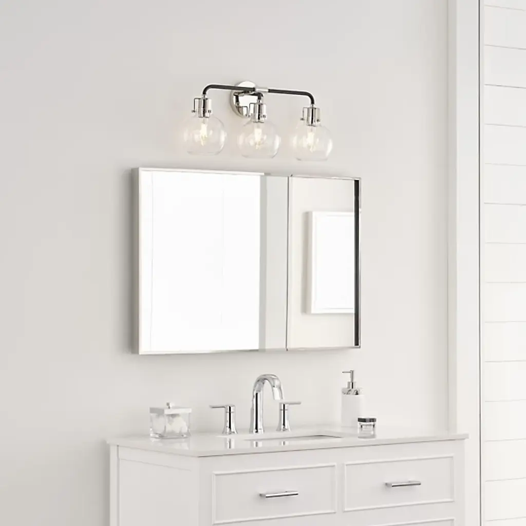 A clear choice for bringing both grit and glamour to your bathroom setting. The Clara Vanity Light by Visual Comfort Studio, formerly known as Sean Lavin, is both rugged and upscale, due to a mixture of aesthetic elements that will please you no matter your artistic inclination. Multiple Clear Seeded Glass shades are suspended form a multi-pronged stem, providing both transparency and a subtly rough texture. In contrast with the Glass shades, the Steel stem is monochromatic and metallic, bringing grit and luster to the aesthetic.