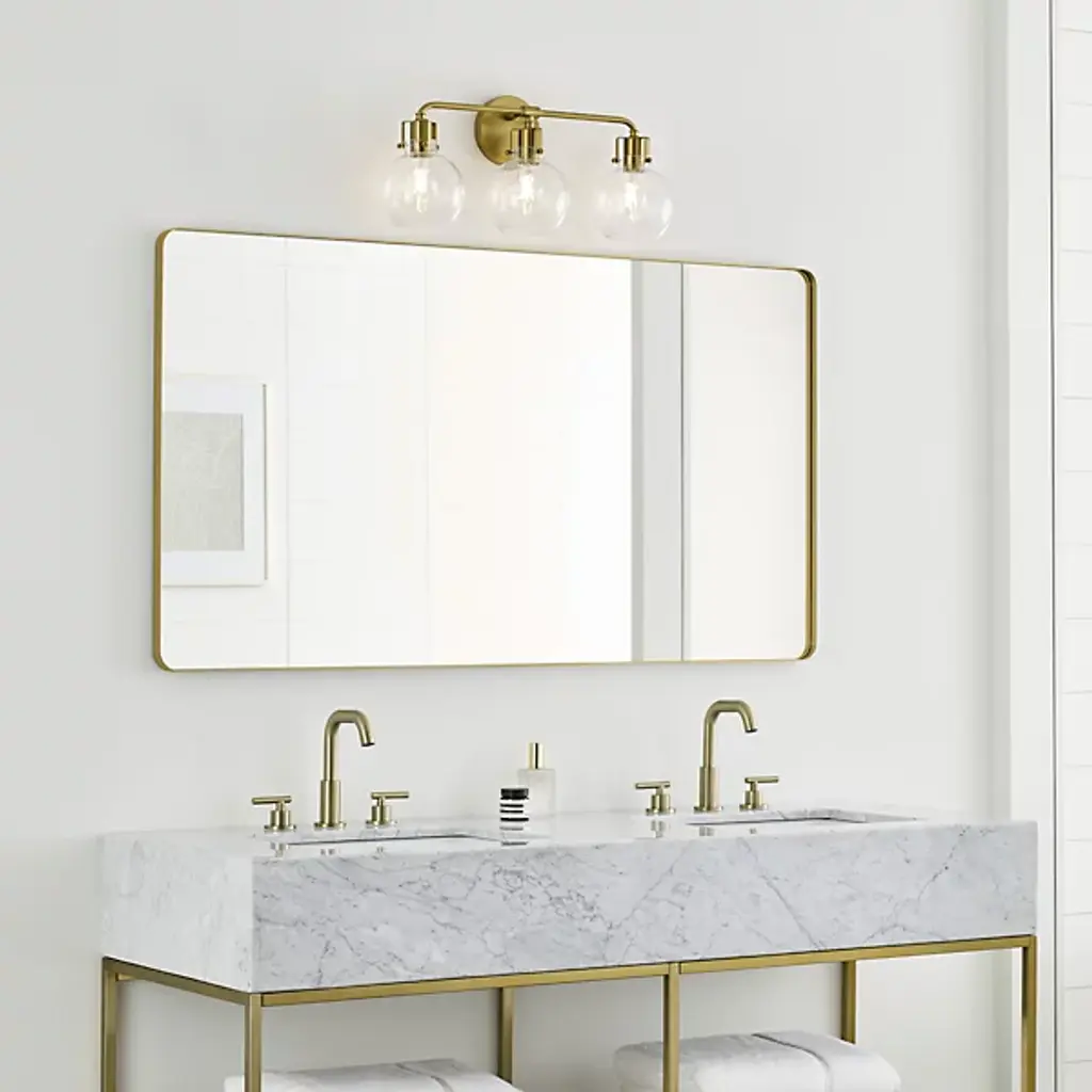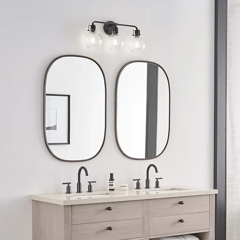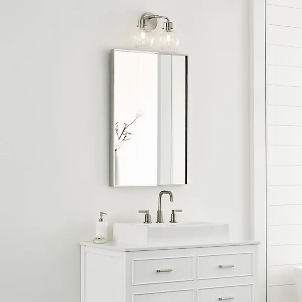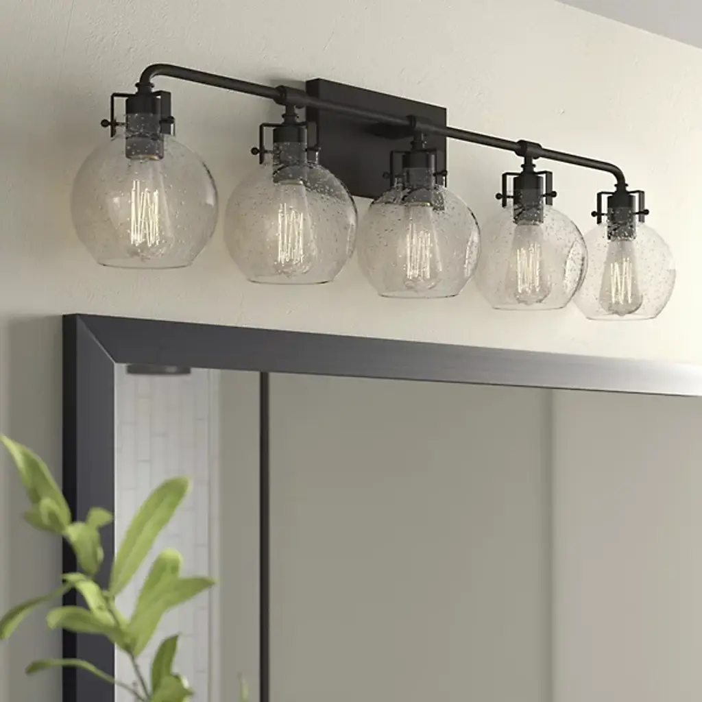A clear choice for bringing both grit and glamour to your bathroom setting. The Clara Vanity Light by Visual Comfort Studio, formerly known as Sean Lavin, is both rugged and upscale, due to a mixture of aesthetic elements that will please you no matter your artistic inclination. Multiple Clear Seeded Glass shades are suspended form a multi-pronged stem, providing both transparency and a subtly rough texture. In contrast with the Glass shades, the Steel stem is monochromatic and metallic, bringing grit and luster to the aesthetic.