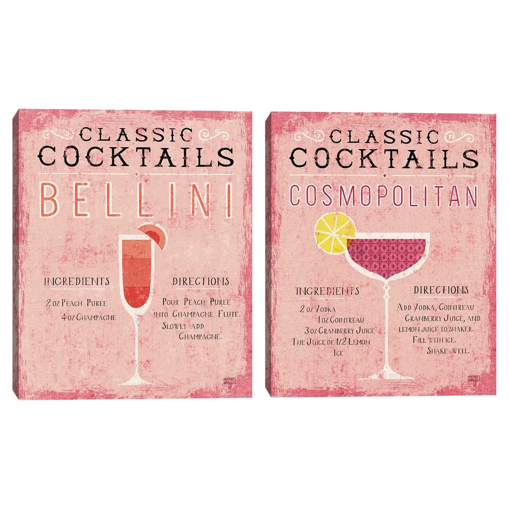 Classic Cocktails Bellini Pink, Classic Cocktails Cosmopolitan Pink By Michael Mullan Canvas Art Prints - 11x14x2