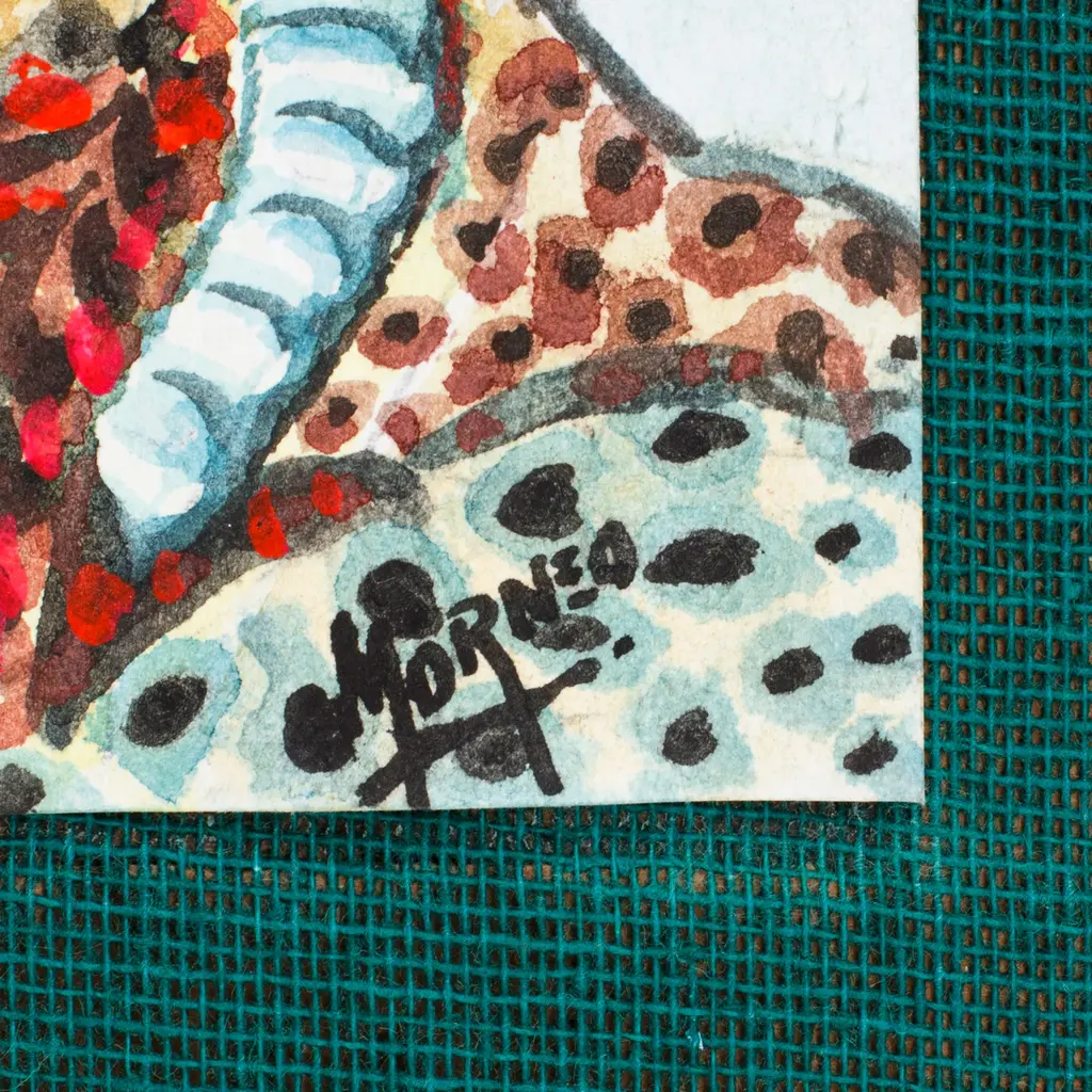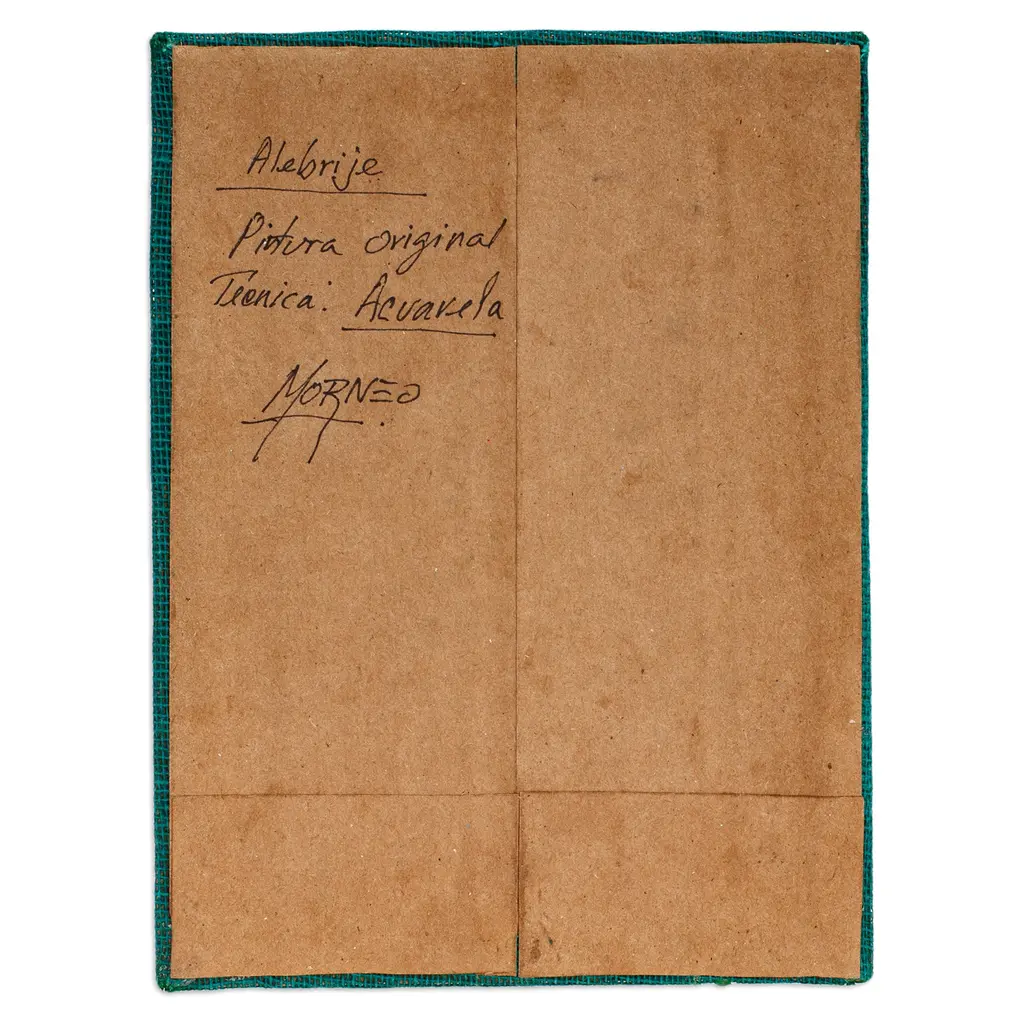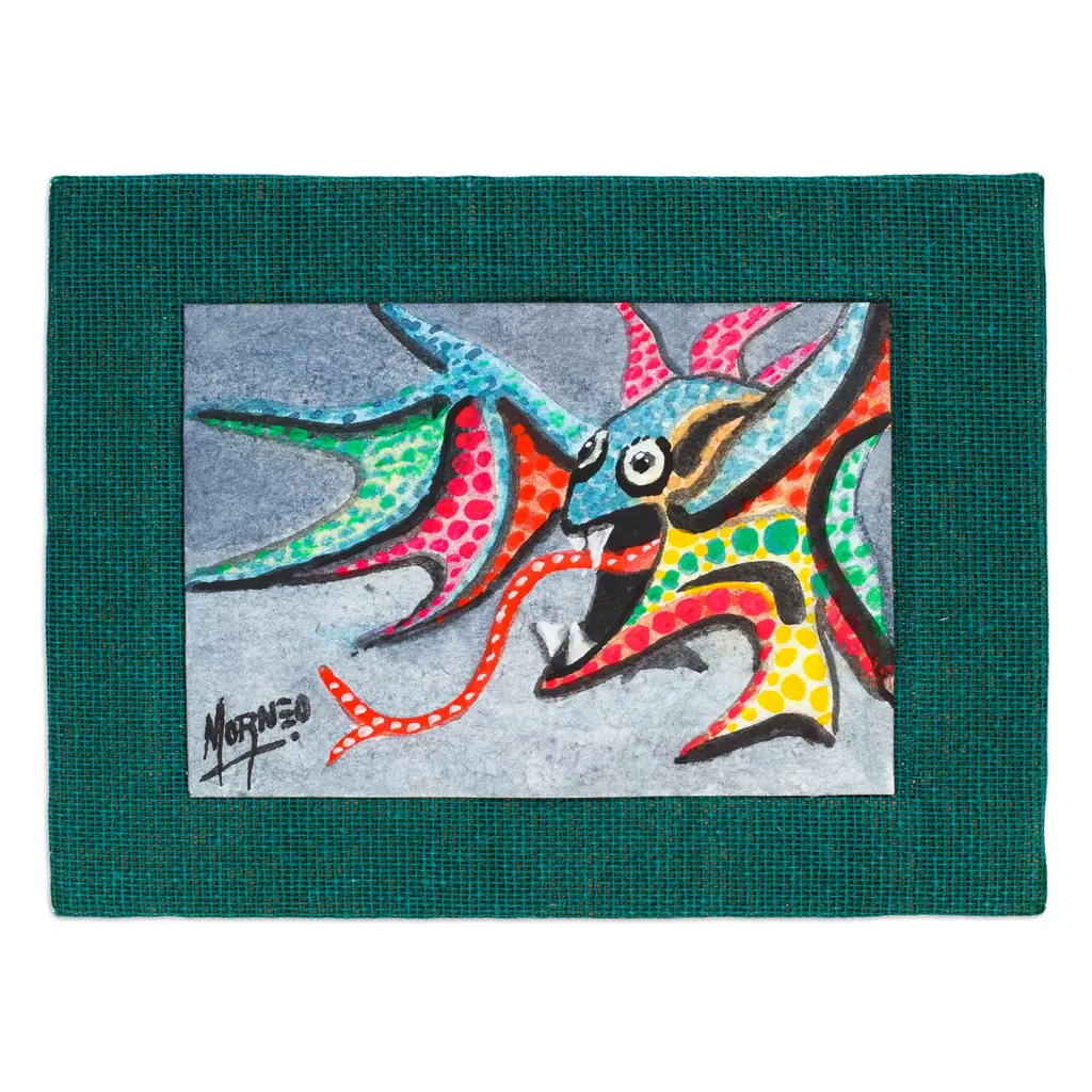 Decades ago, in the classic Mexico City of the 1930s, a fever dream added an expressionist and colorful accent to the traditional regional arts. Pedro Linares' imagination initiated a famous trend that decade, masterfully merging classic themes with fantasy and creating the alebrijes, a series of imaginary creatures whose vibrant shades and captivating characteristics transport the world to an ethereal dimension.As a proud inheritor of his country's culture and customs, artist Morneo continues Pedro Linares' legacy with a watercolor composition, portraying a snake with dots in the Alebrije style, combining red and blue hues for a vivacious aura.The piece, titled Alebrije Serpiente Puntos Rojos in Spanish, comes signed, stretched and on a mat.